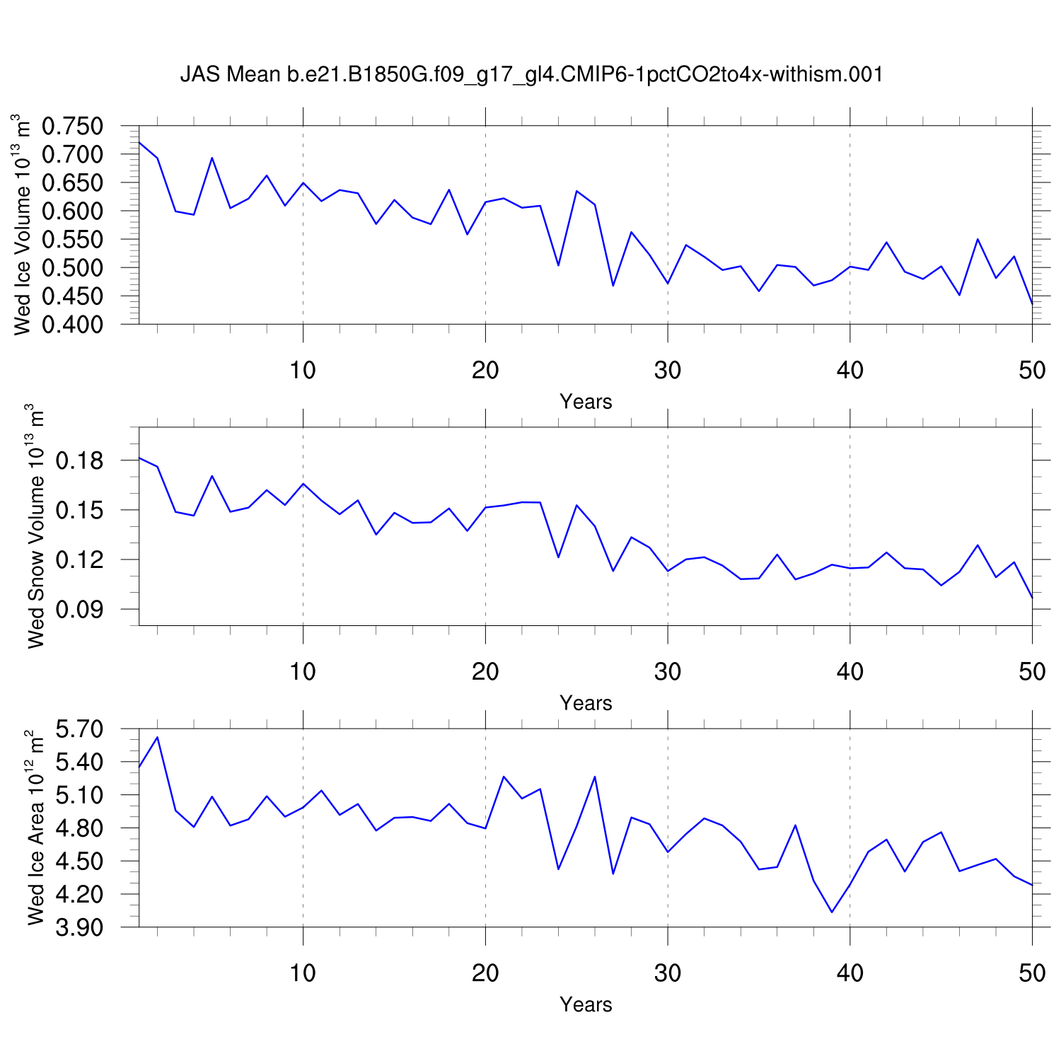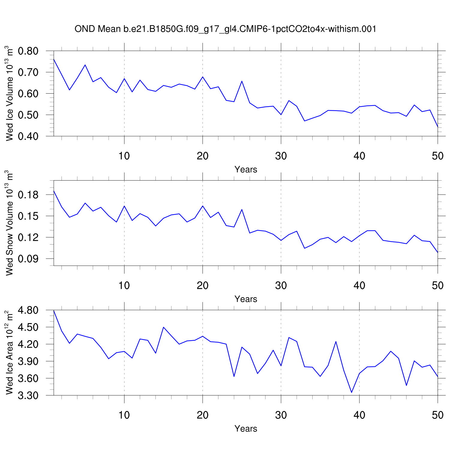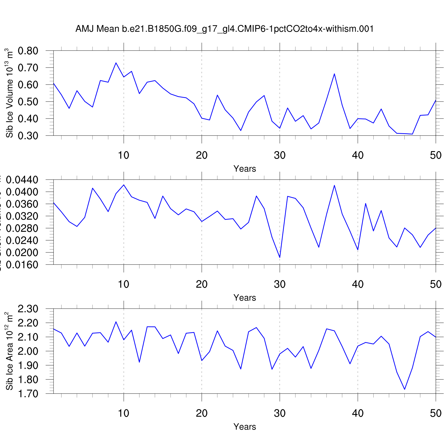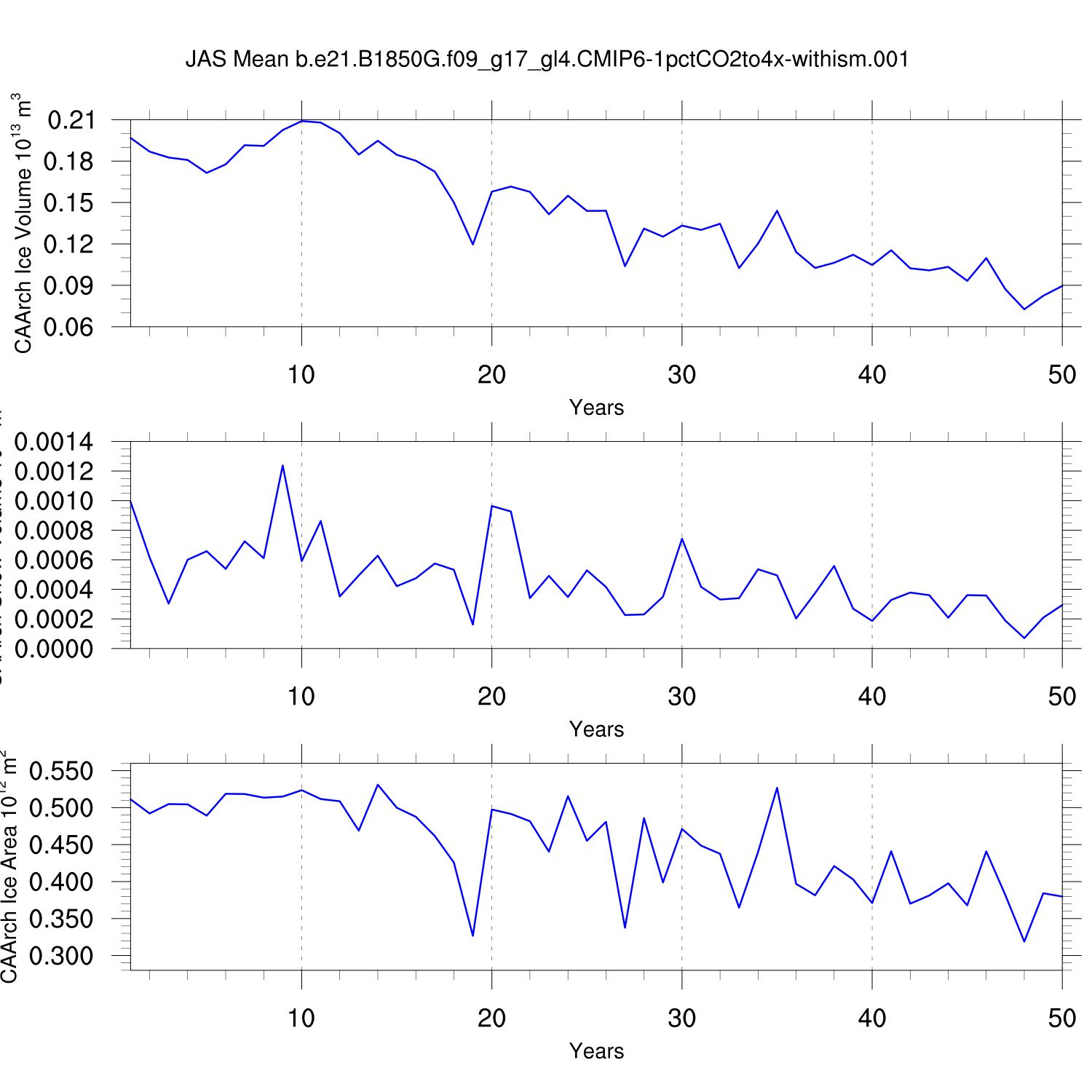CICE Output for b.e21.B1850G.f09_g17_gl4.CMIP6-1pctCO2to4x-withism.001