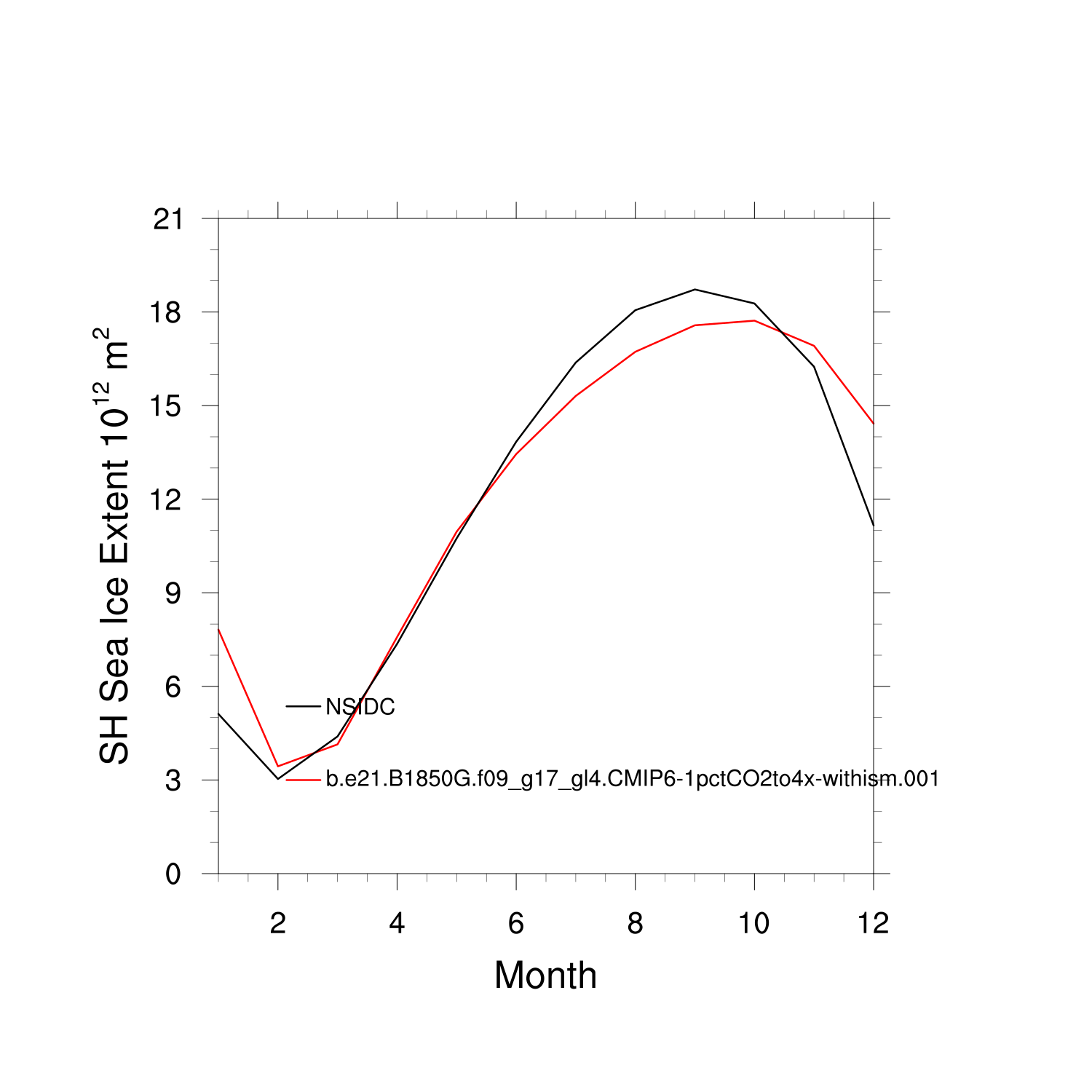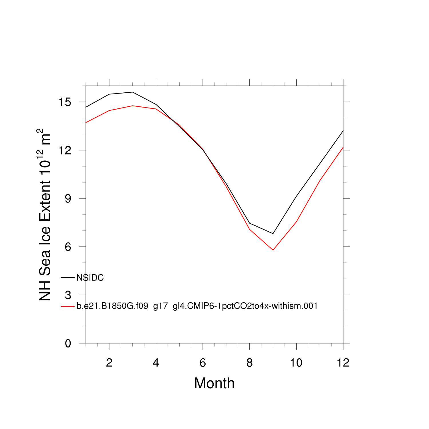 Climatological Monthly Mean Extent vs Obs plot plot