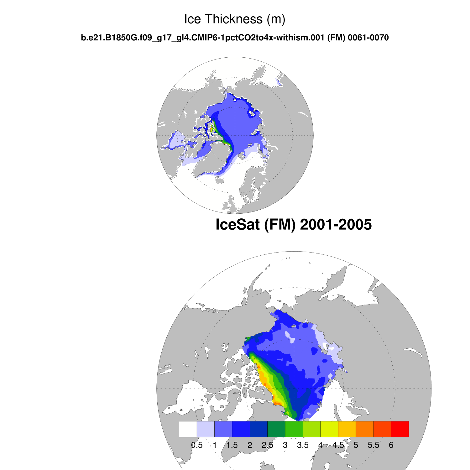 Ice Thickness vs IceSat (NH) Contour FM ON ICESat (NH) info