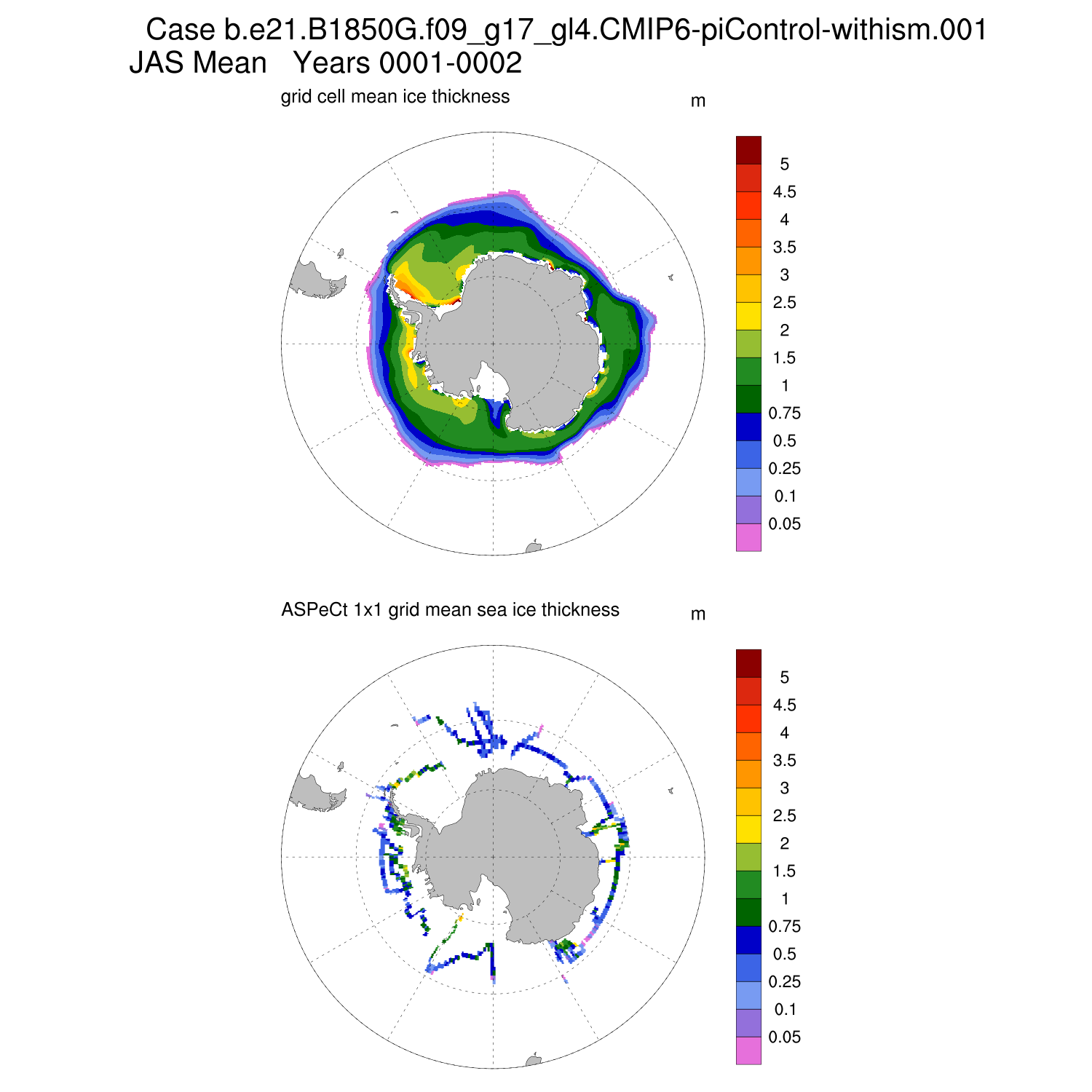 Ice Thickness vs ASPeCt (SH) Contour