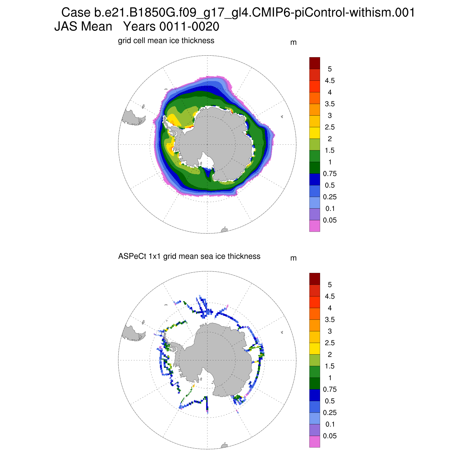 Ice Thickness vs ASPeCt (SH) Contour JFM AMJ JAS OND ASPeCt (SH) info