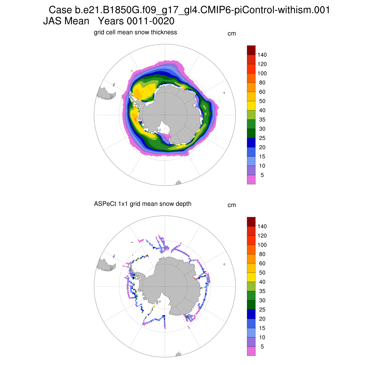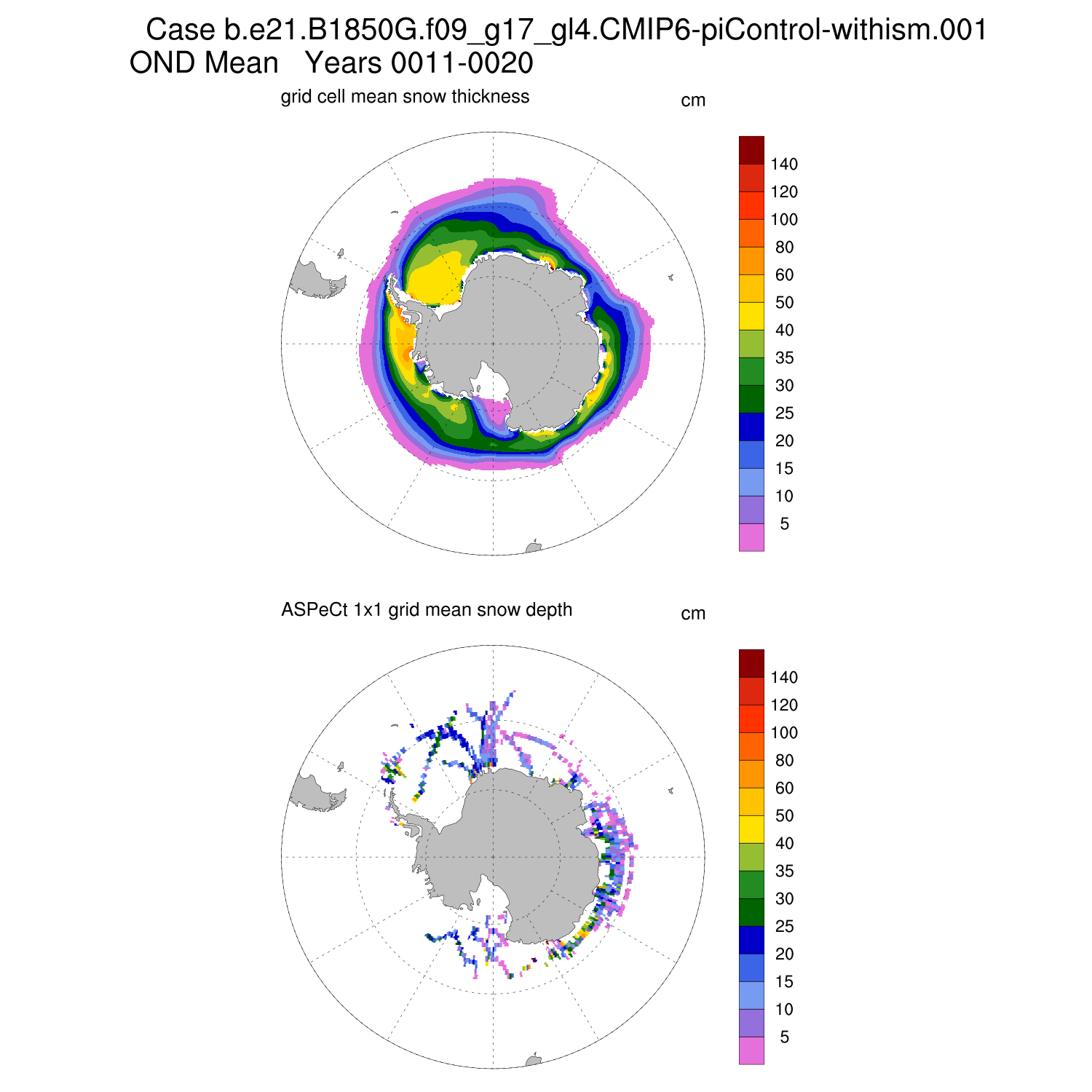 Snow Depth vs ASPeCt (SH) Contour JFM AMJ JAS OND ASPeCt (SH) info