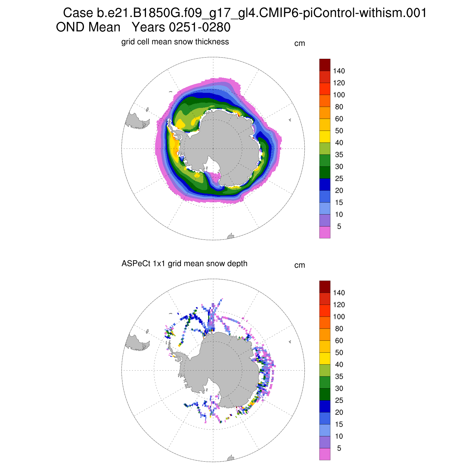 Snow Depth vs ASPeCt (SH) Contour JFM AMJ JAS OND ASPeCt (SH) info