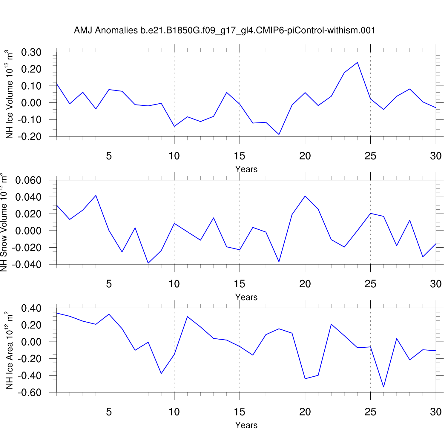Time Series of Ice Volume, Snow Volume and Ice Area NH SH