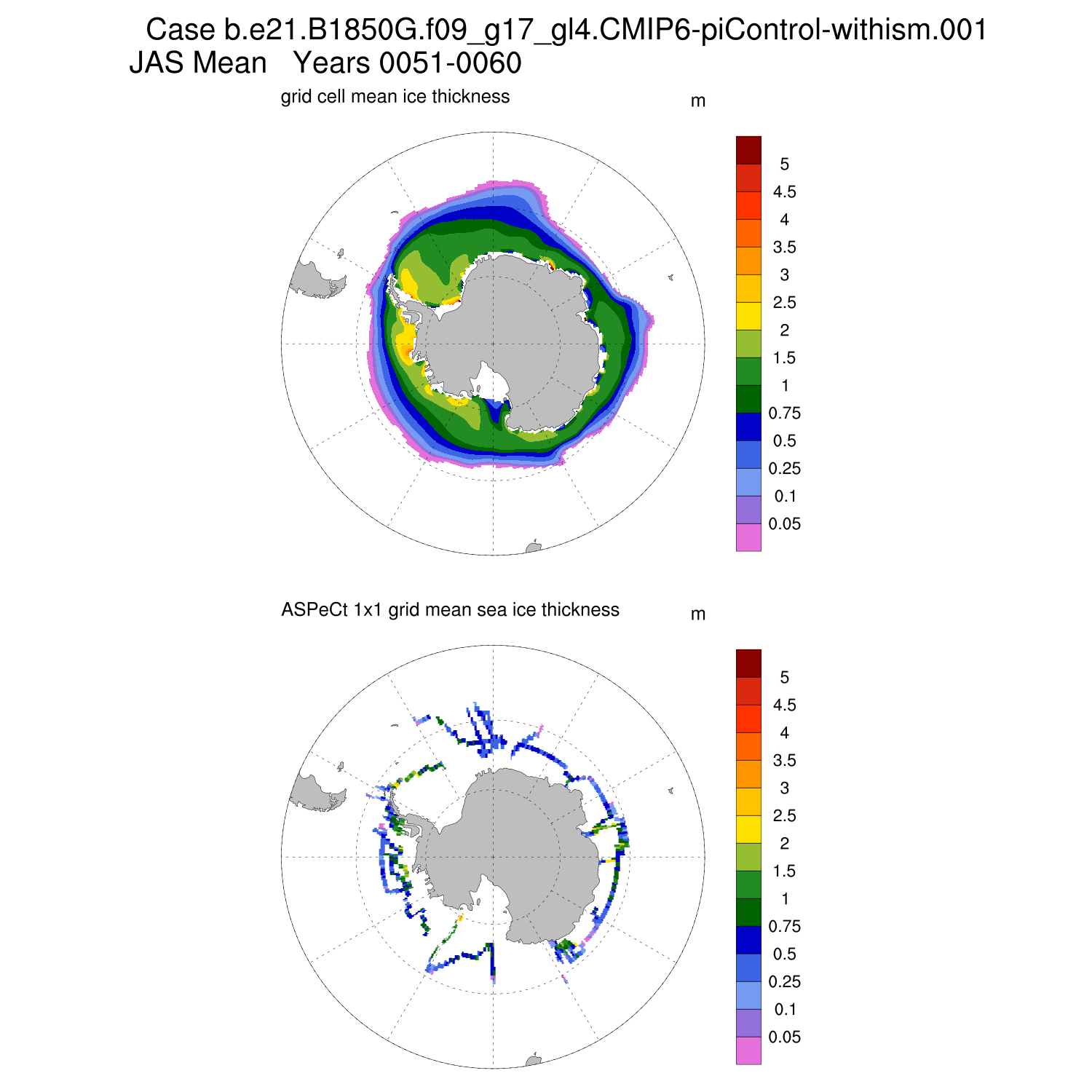Ice Thickness vs ASPeCt (SH) Contour