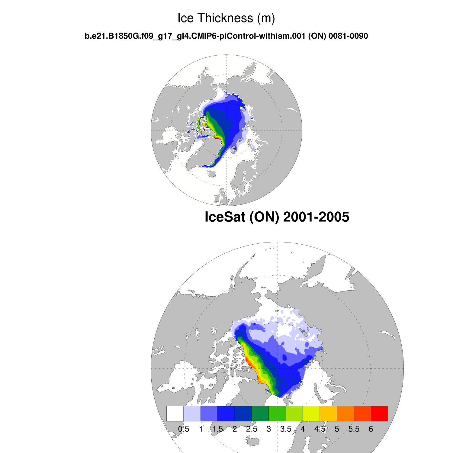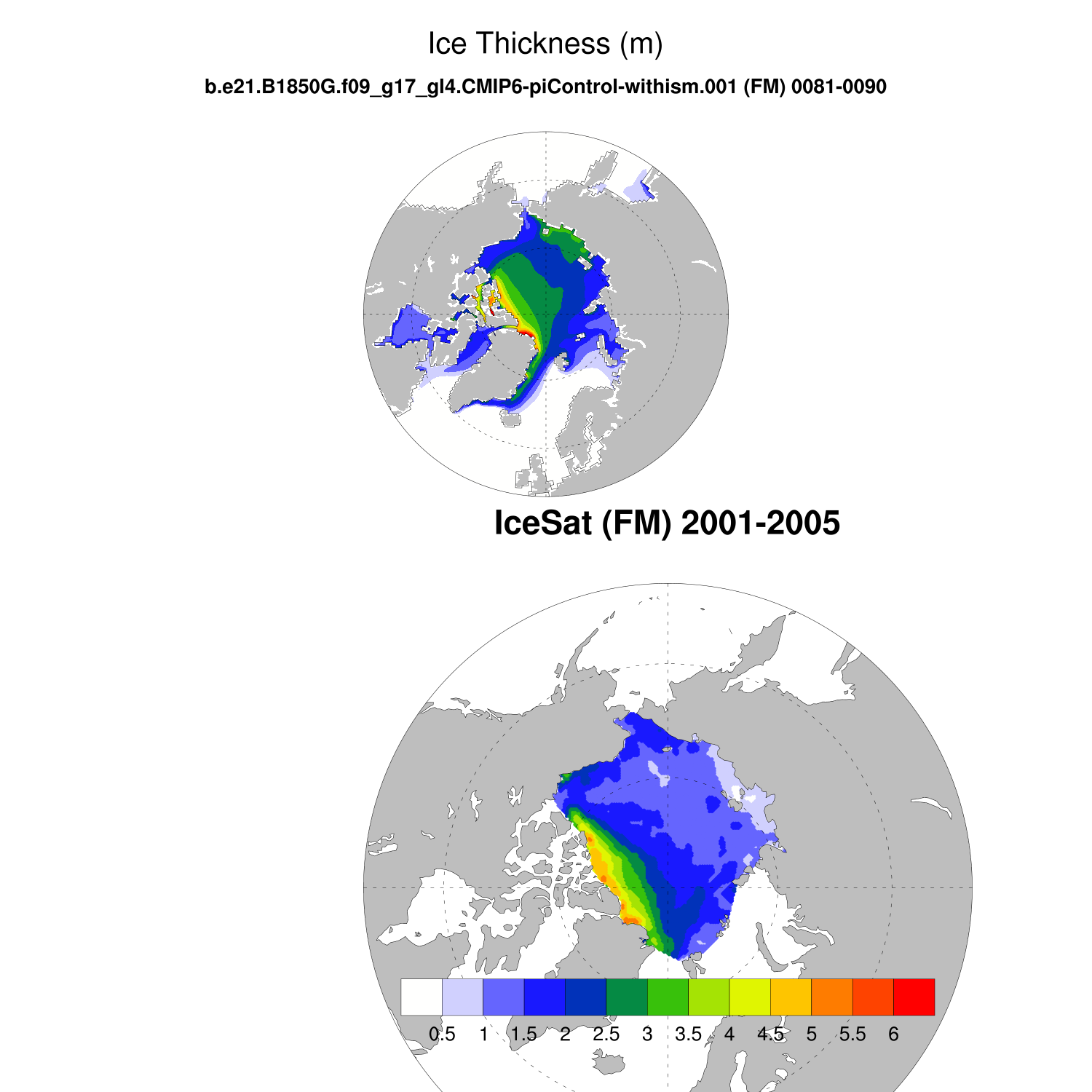 Ice Thickness vs IceSat (NH) Contour FM ON ICESat (NH) info