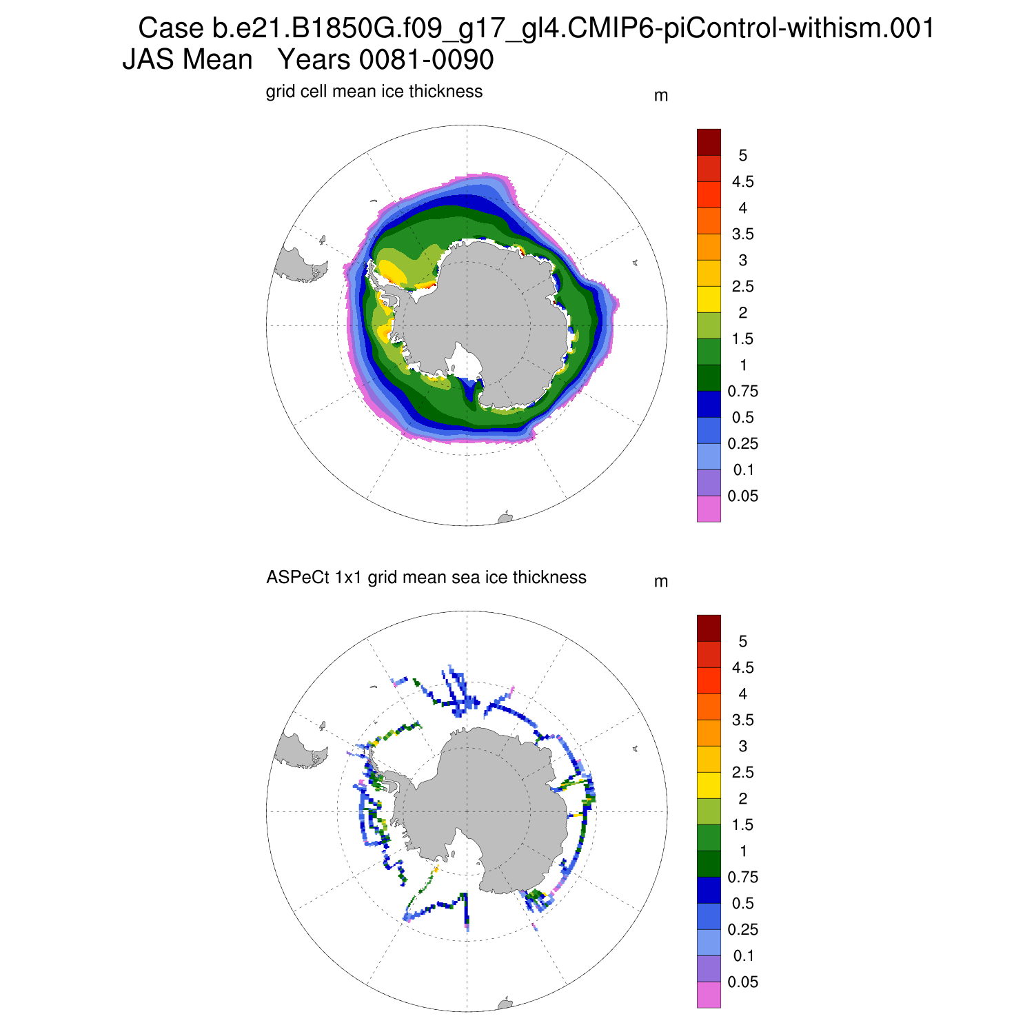 Ice Thickness vs ASPeCt (SH) Contour JFM AMJ JAS OND ASPeCt (SH) info
