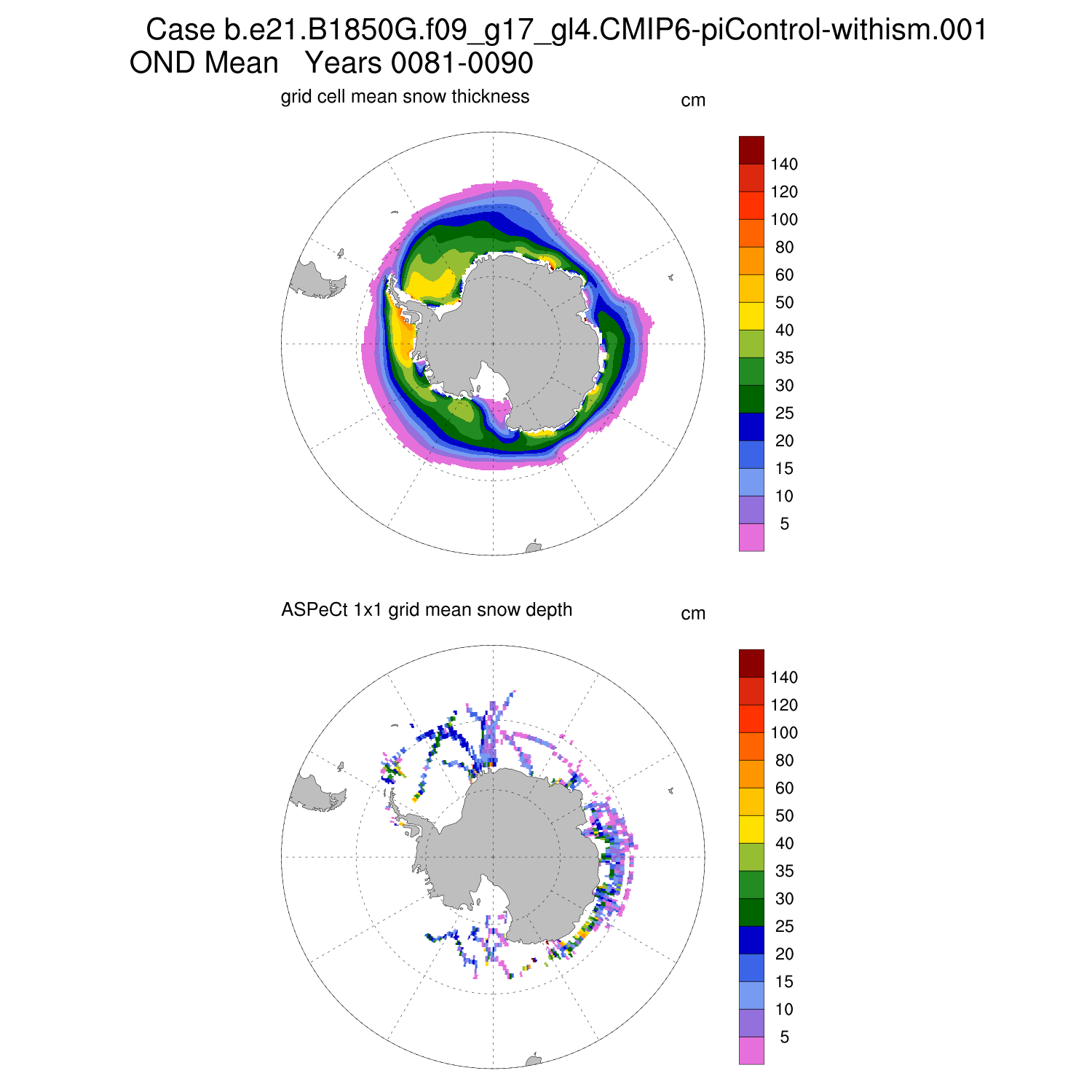 Snow Depth vs ASPeCt (SH) Contour JFM AMJ JAS OND ASPeCt (SH) info