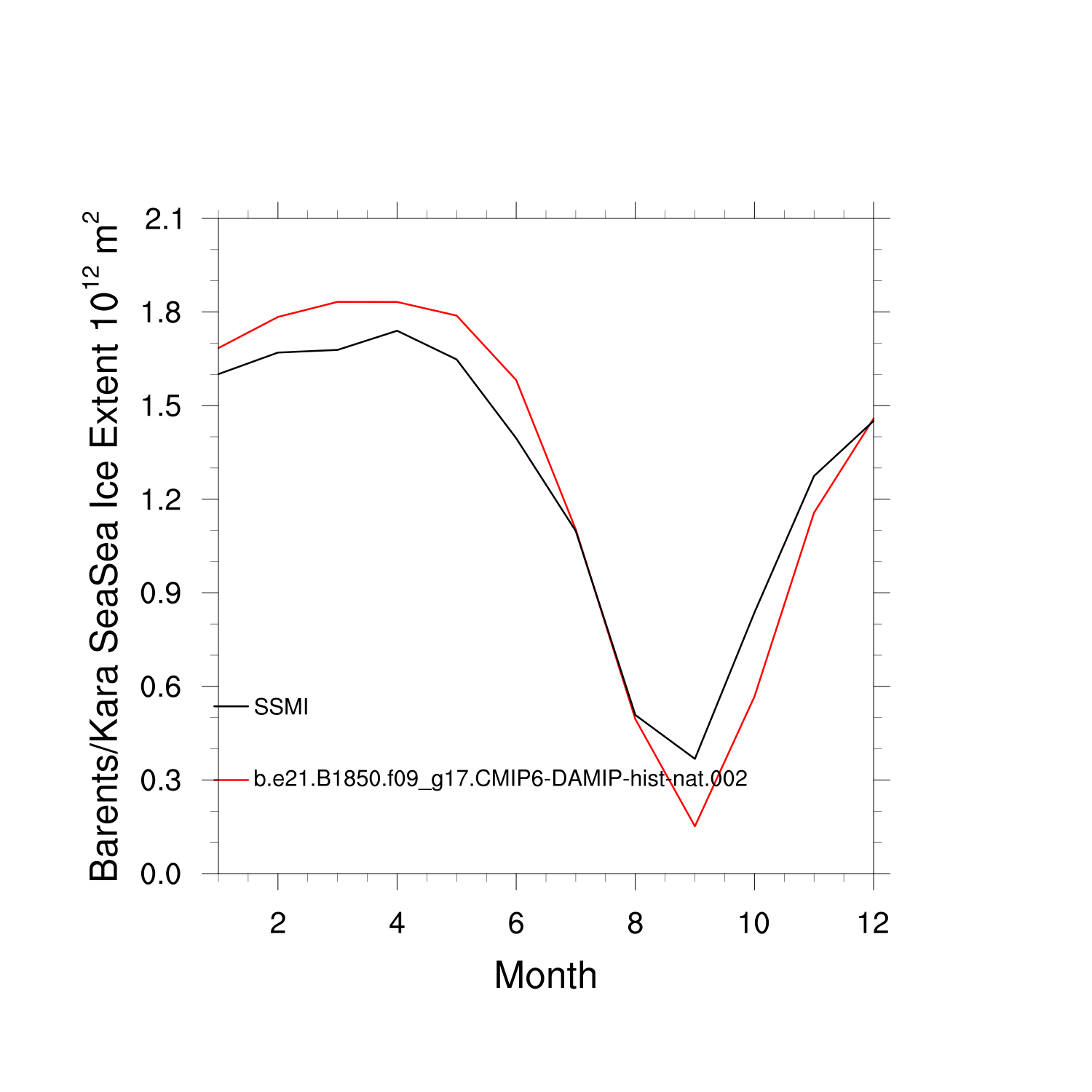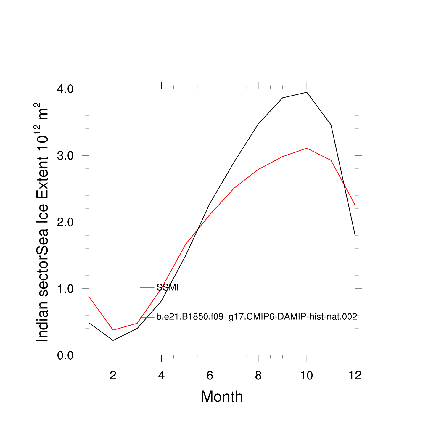 Climatological Monthly Mean Extent vs Obs plot