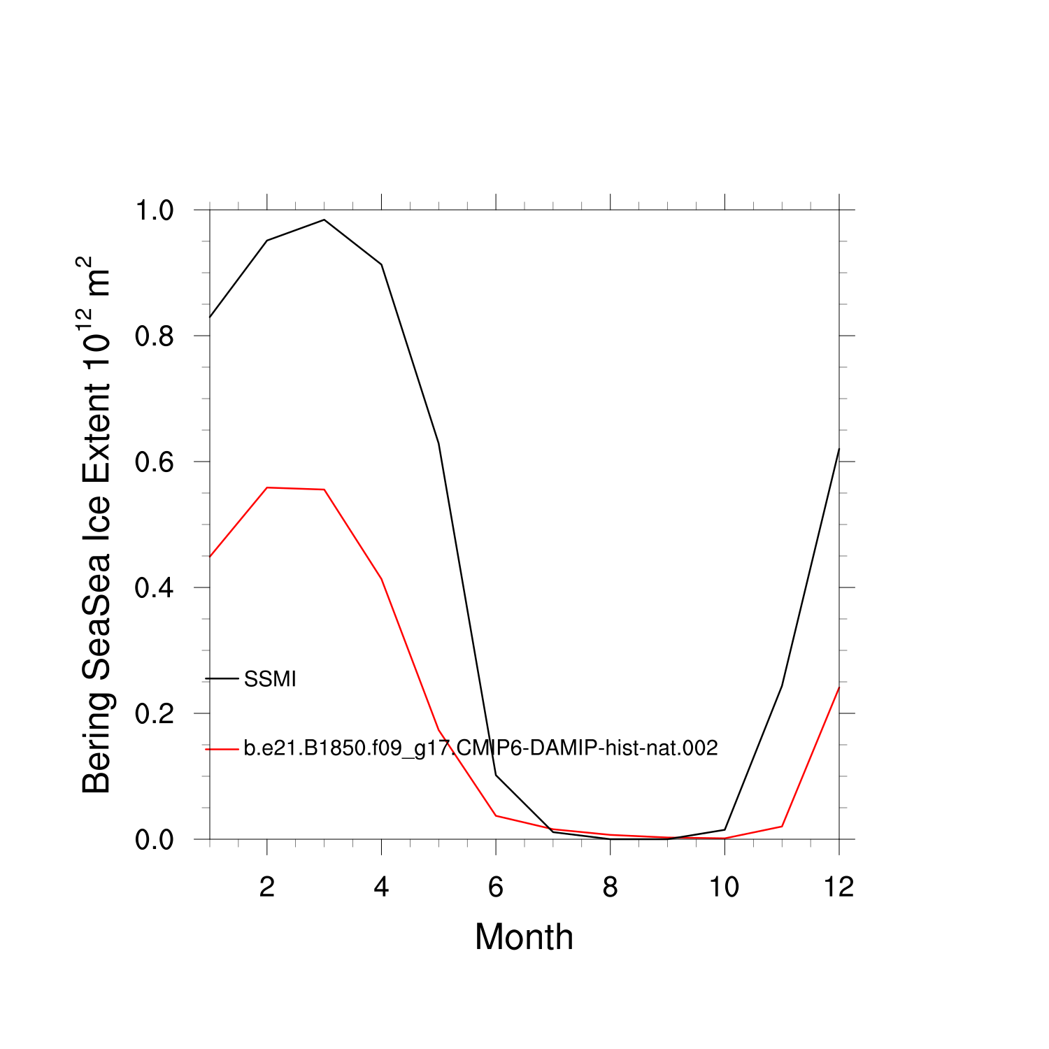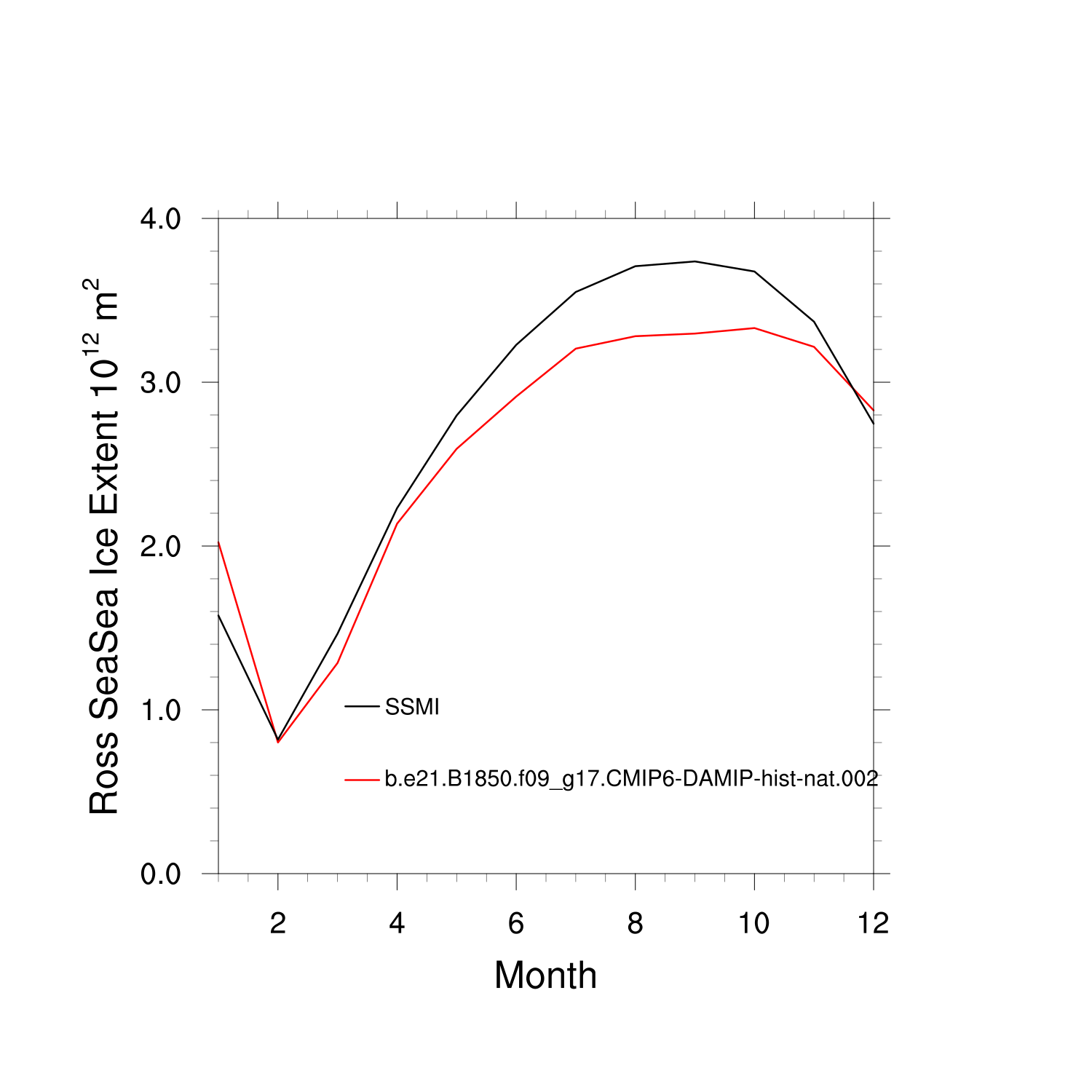 Climatological Monthly Mean Extent vs Obs plot Climatological Monthly Mean Extent vs Obs plot