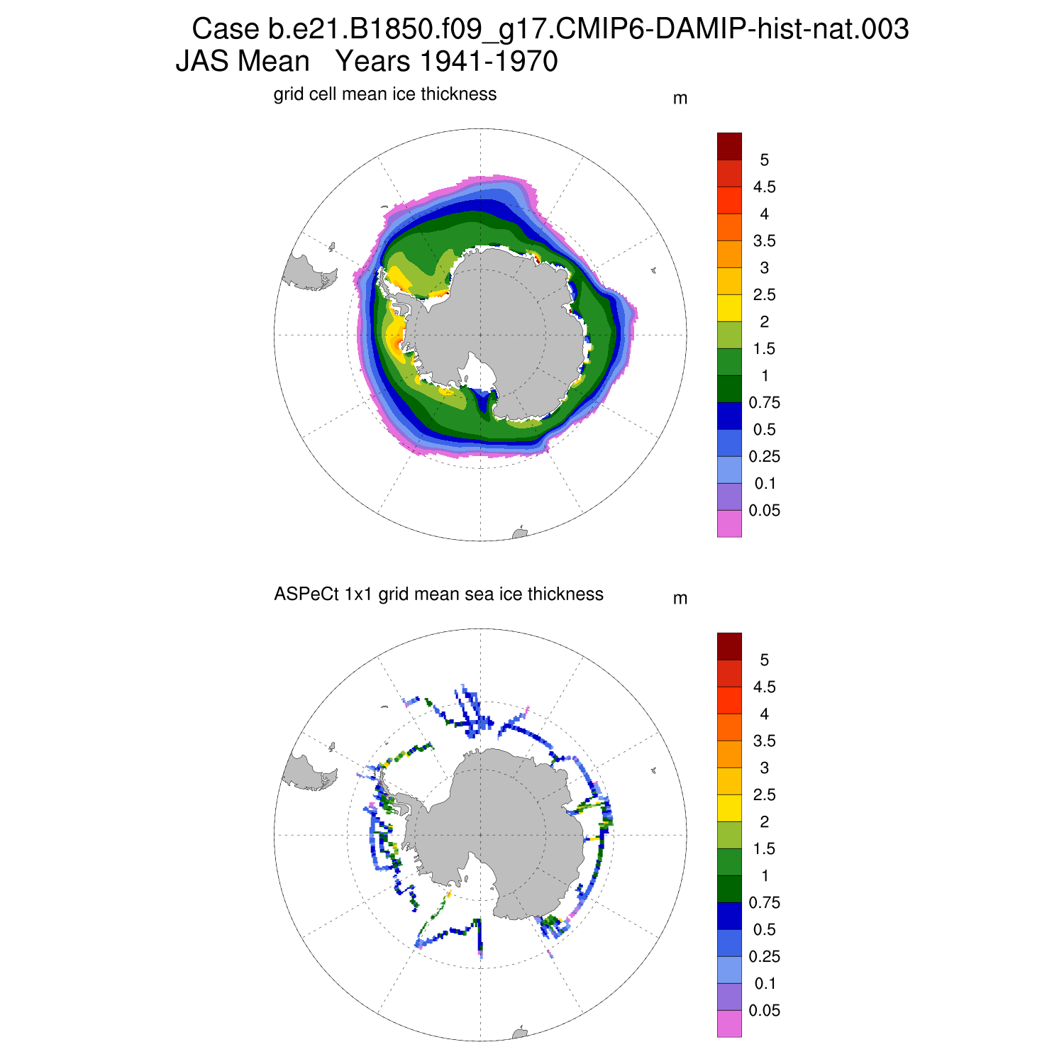 Ice Thickness vs ASPeCt (SH) Contour JFM AMJ JAS OND ASPeCt (SH) info