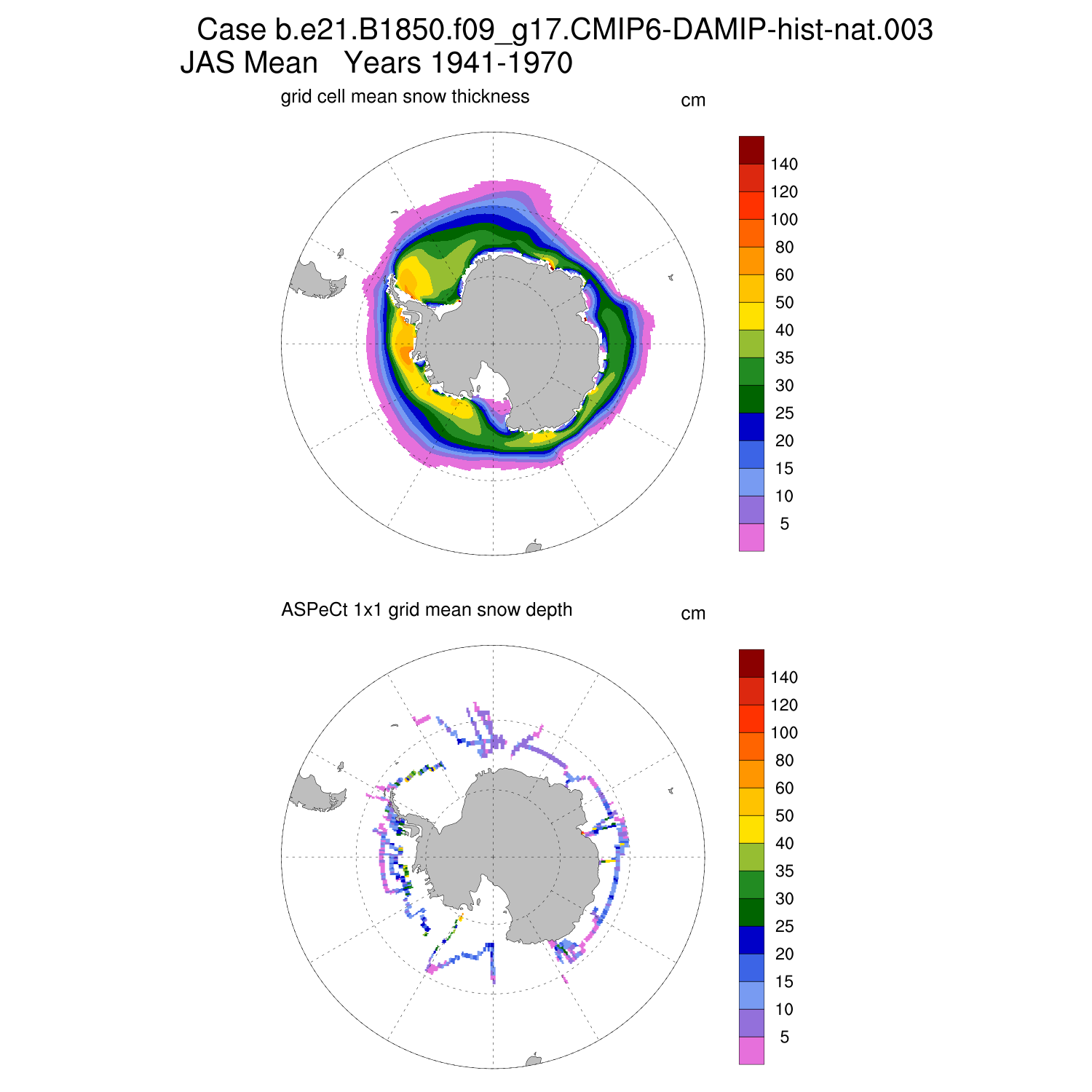 Snow Depth vs ASPeCt (SH) Contour JFM AMJ JAS OND ASPeCt (SH) info