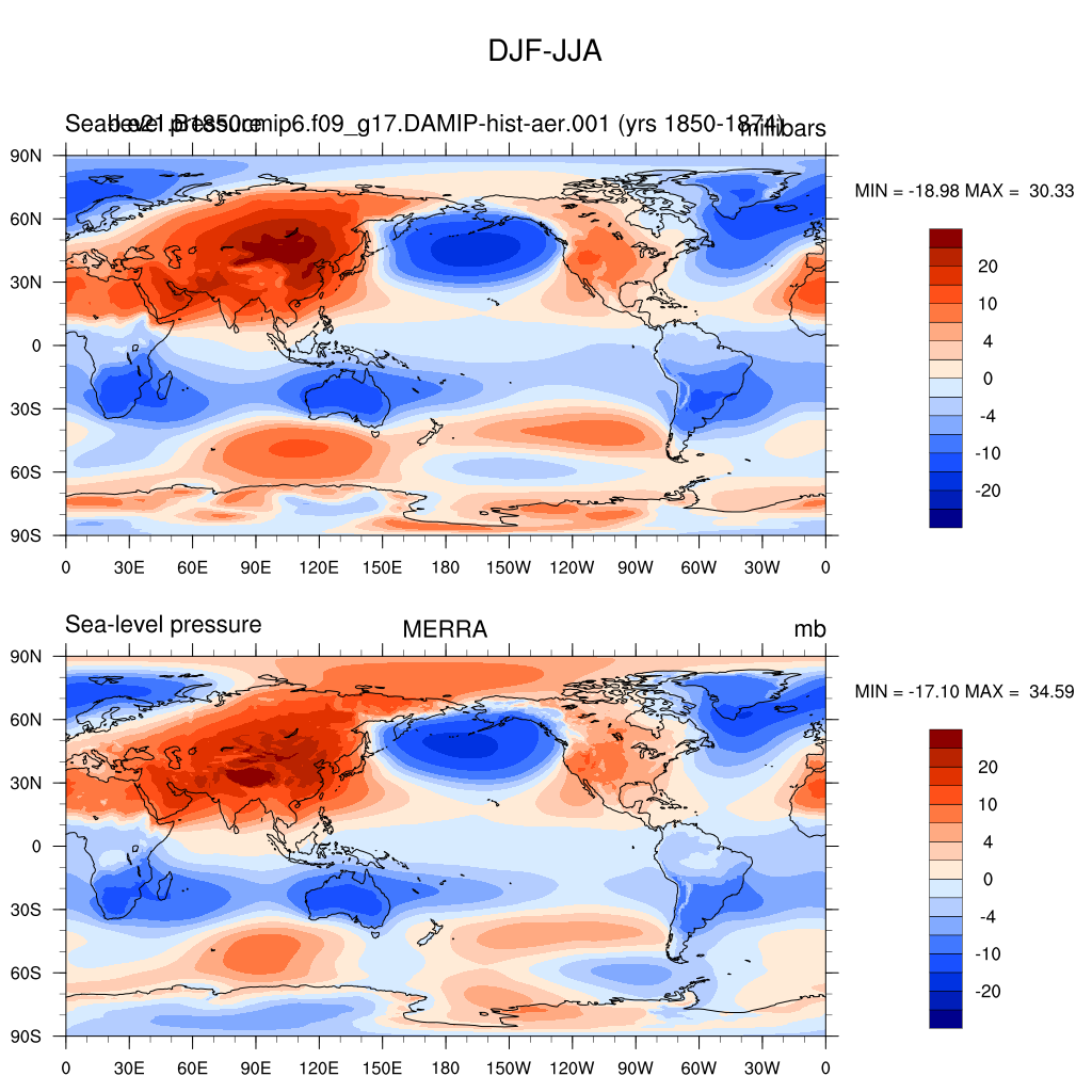 DIAG Set 9 - Horizontal contour plots of DJF-JJA differences