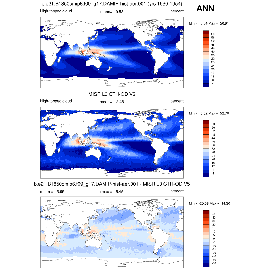 CLDHGH_MISR High-topped cloud amount (tau > 0.3) plot plot plot