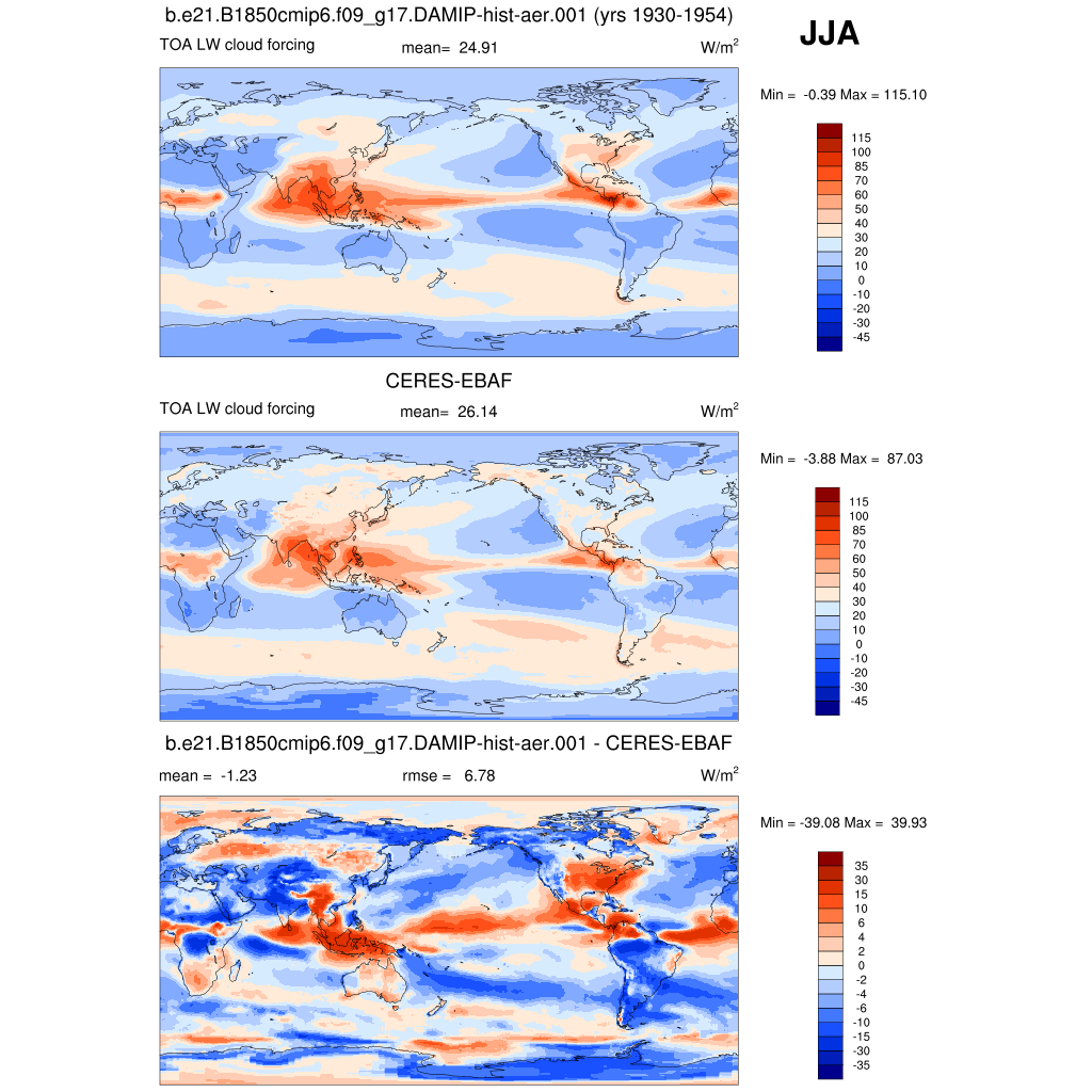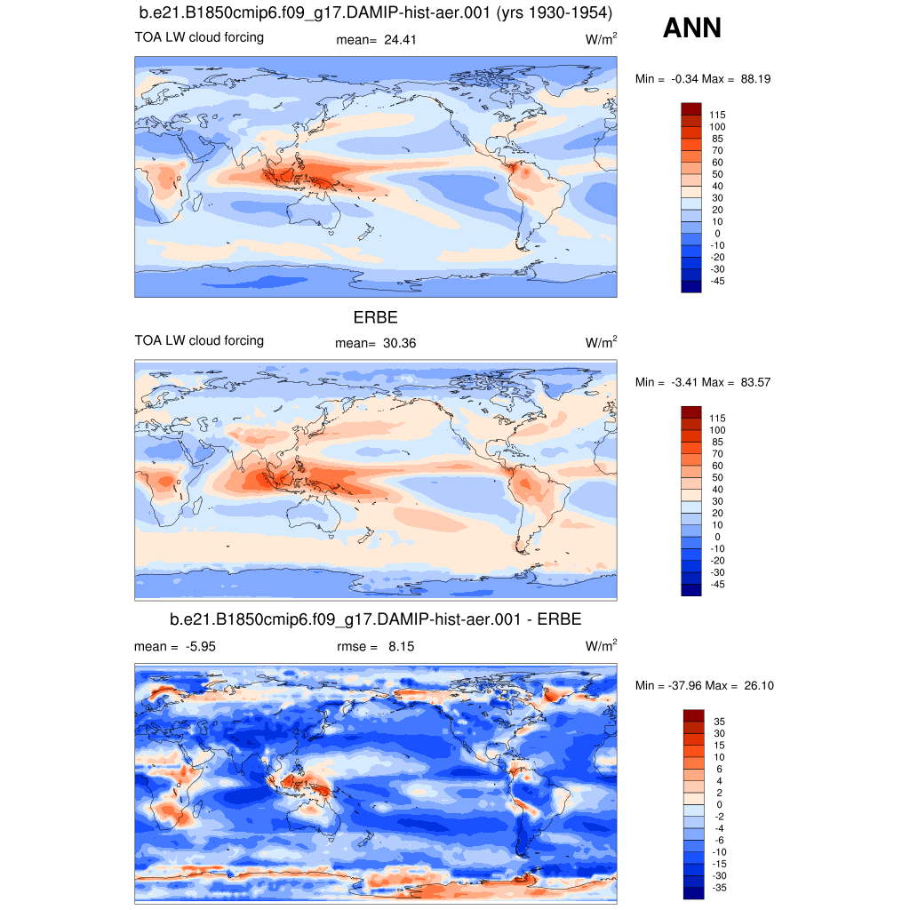 LWCF * TOA longwave cloud forcing plot plot plot