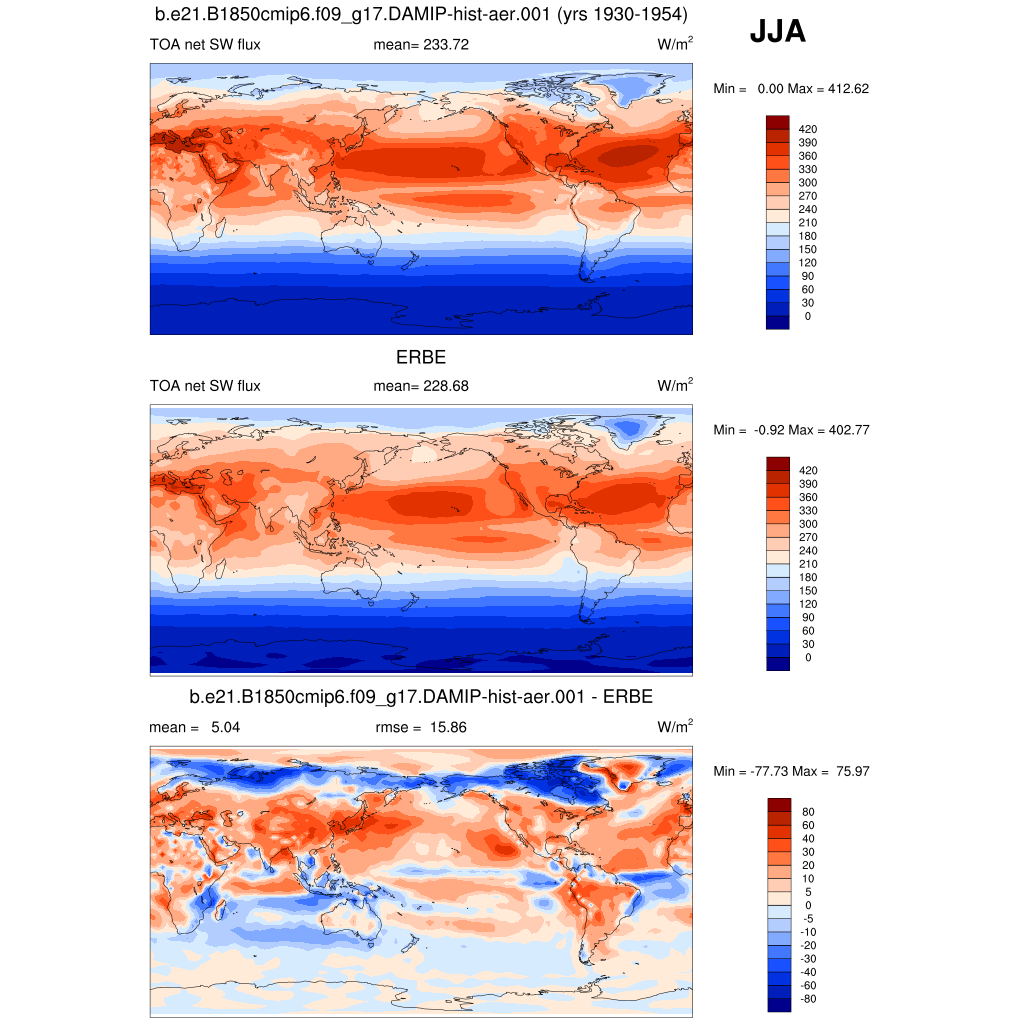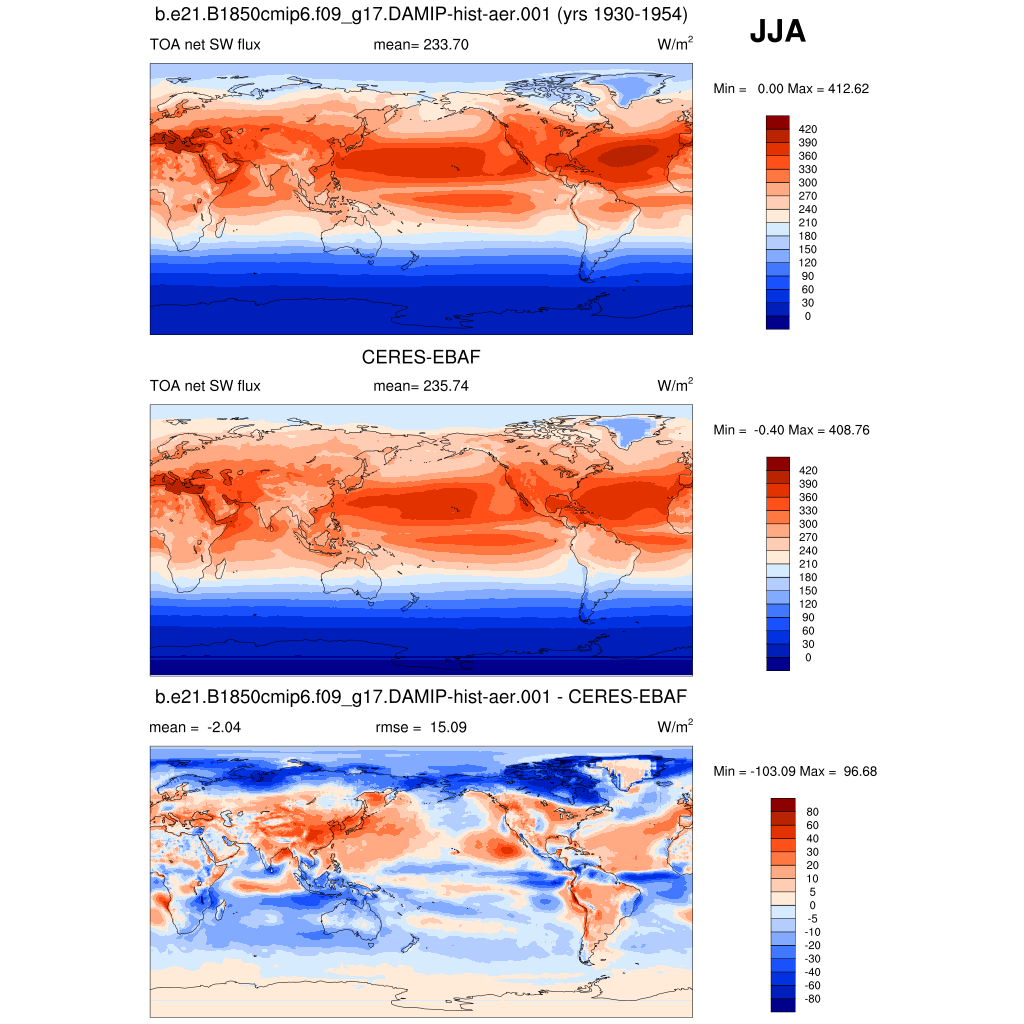 FSNTOA * TOA net SW flux plot plot plot