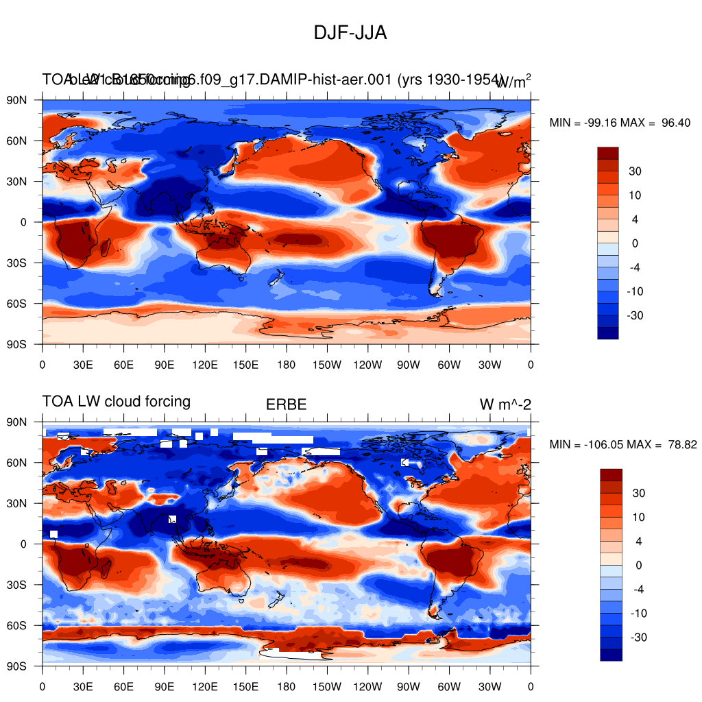 LWCF * TOA longwave cloud forcing plot