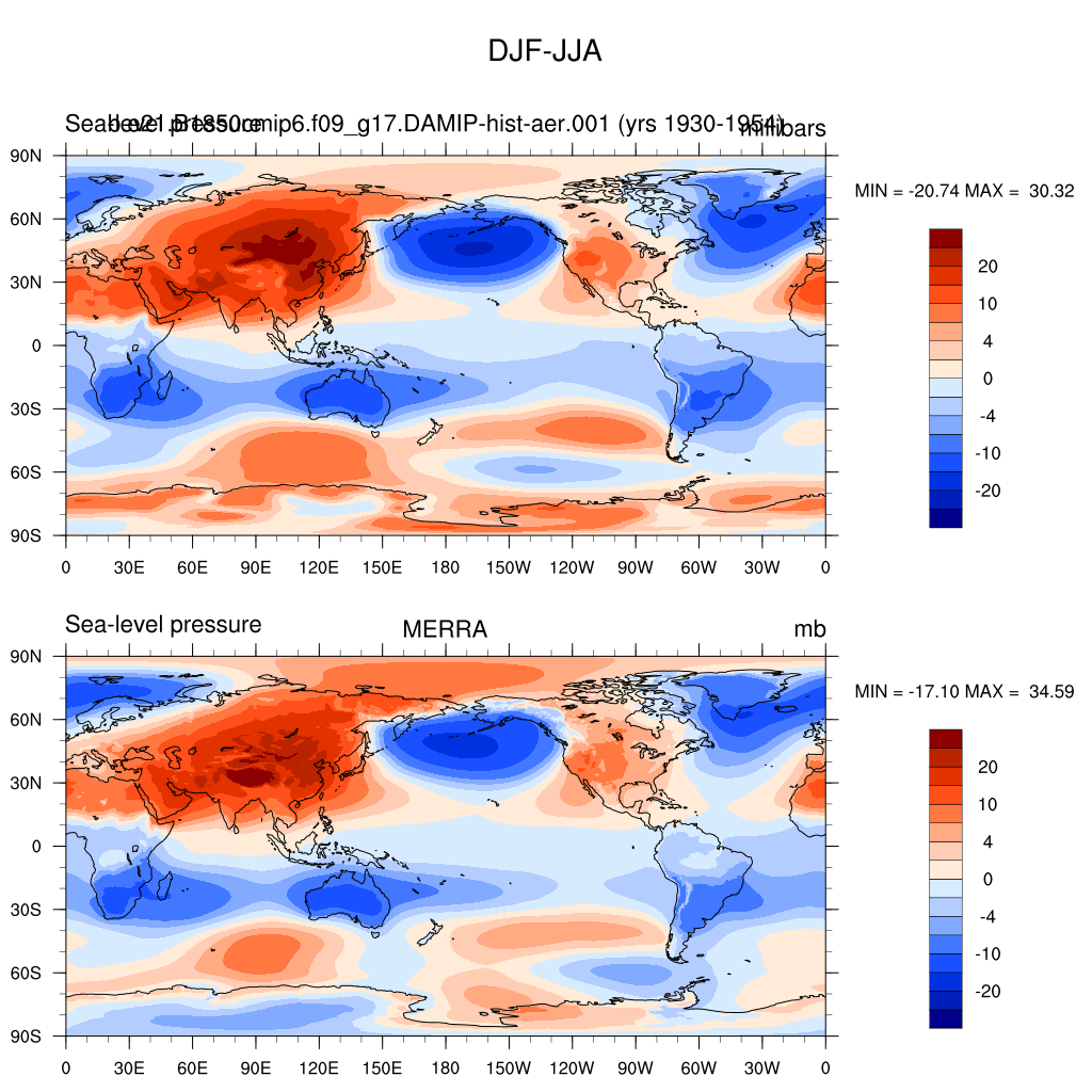 DIAG Set 9 - Horizontal contour plots of DJF-JJA differences