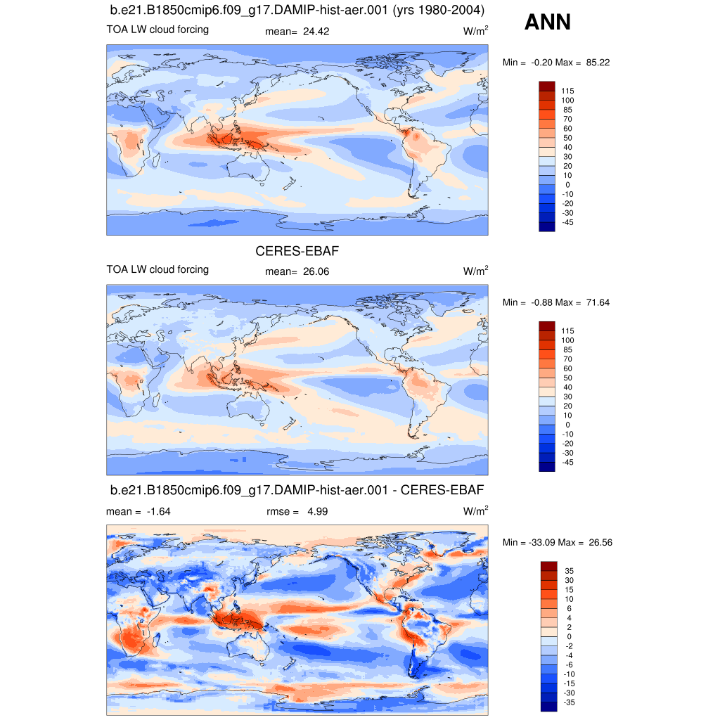 LWCF * TOA longwave cloud forcing plot plot plot