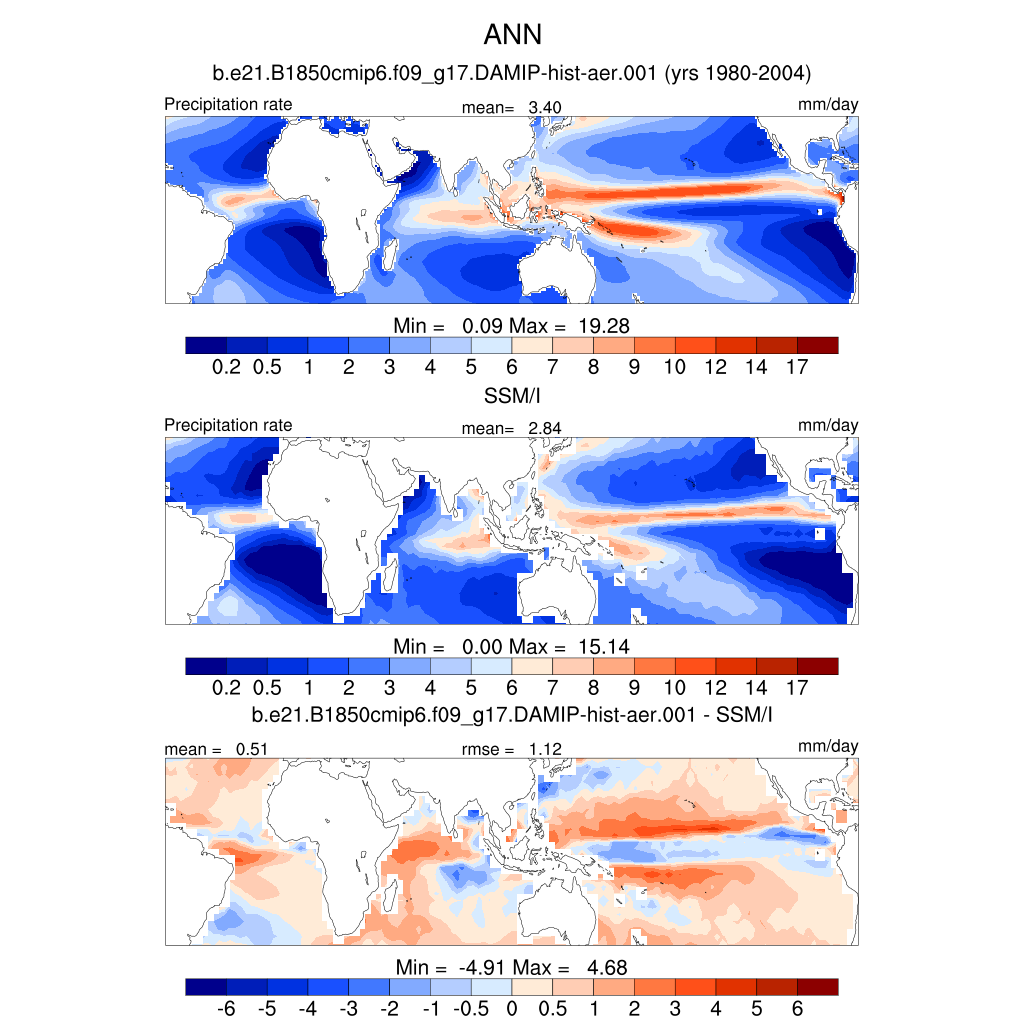 PRECT TROP Tropical precipitation rate (ocean) plot plot plot
