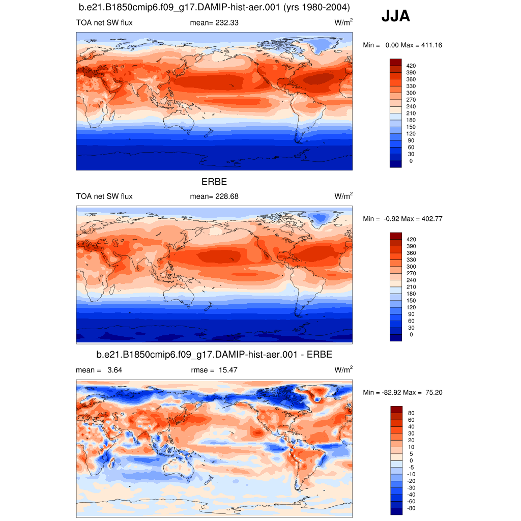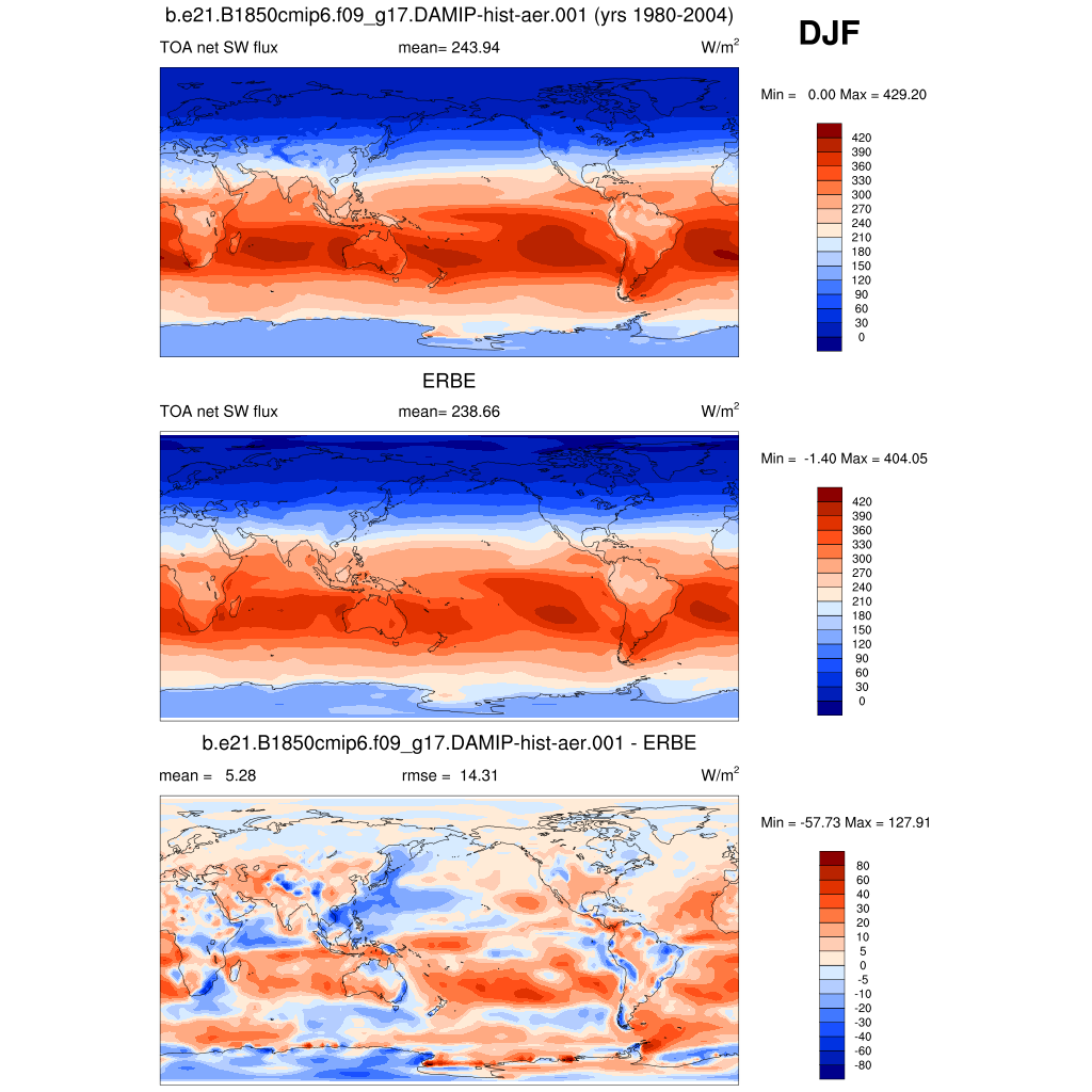 FSNTOA * TOA net SW flux plot plot plot