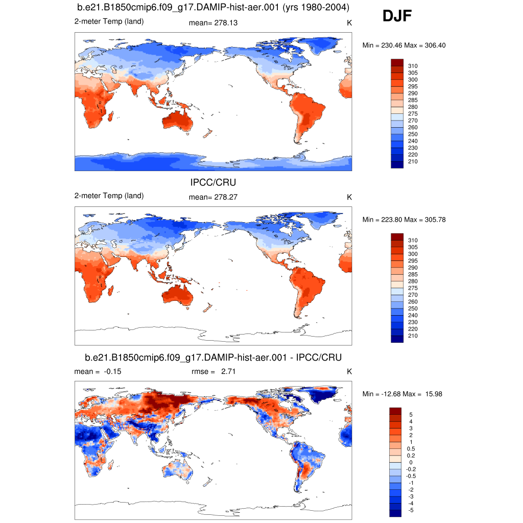 TREFHT 2-meter air temperature (land) plot plot plot