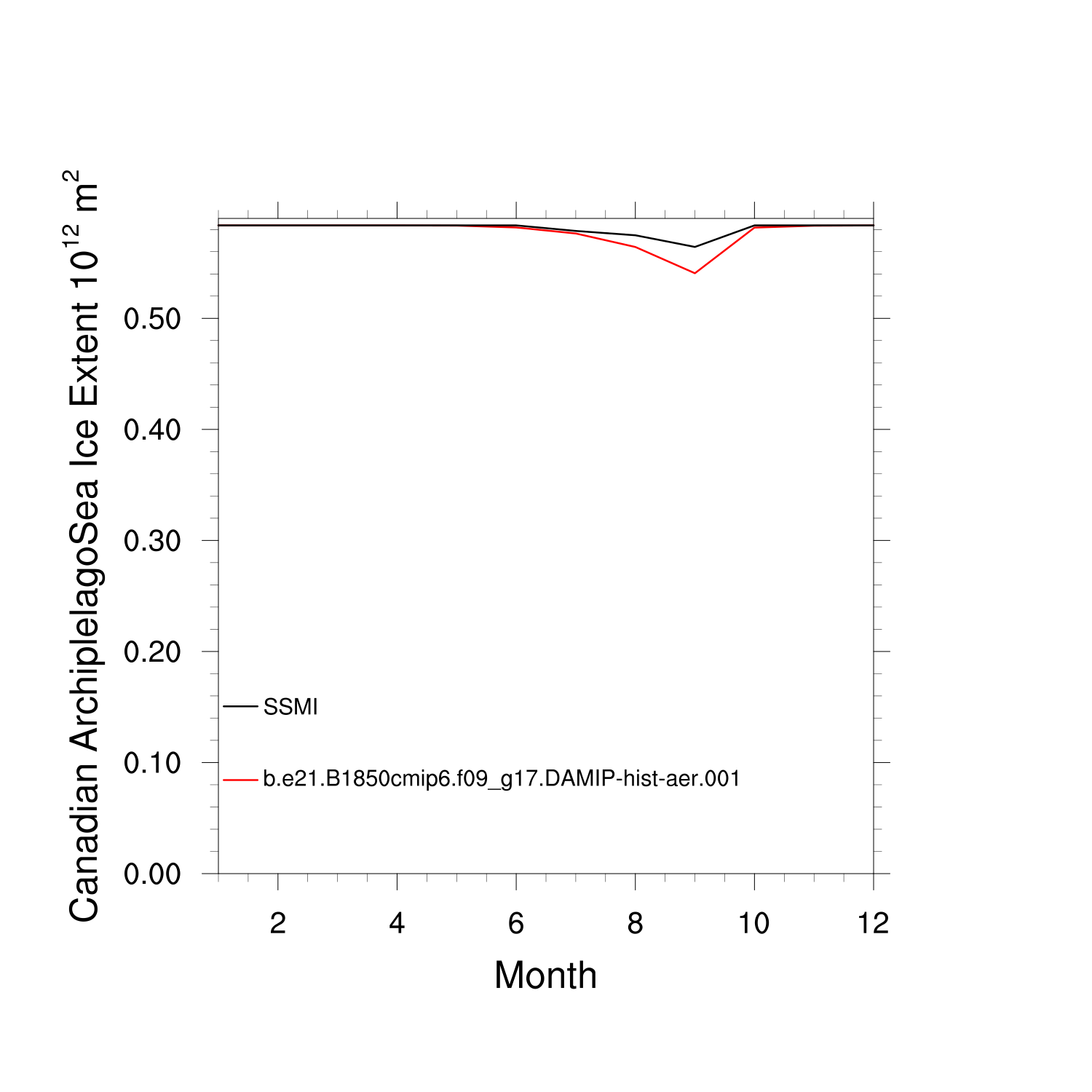 Climatological Monthly Mean Extent vs Obs plot