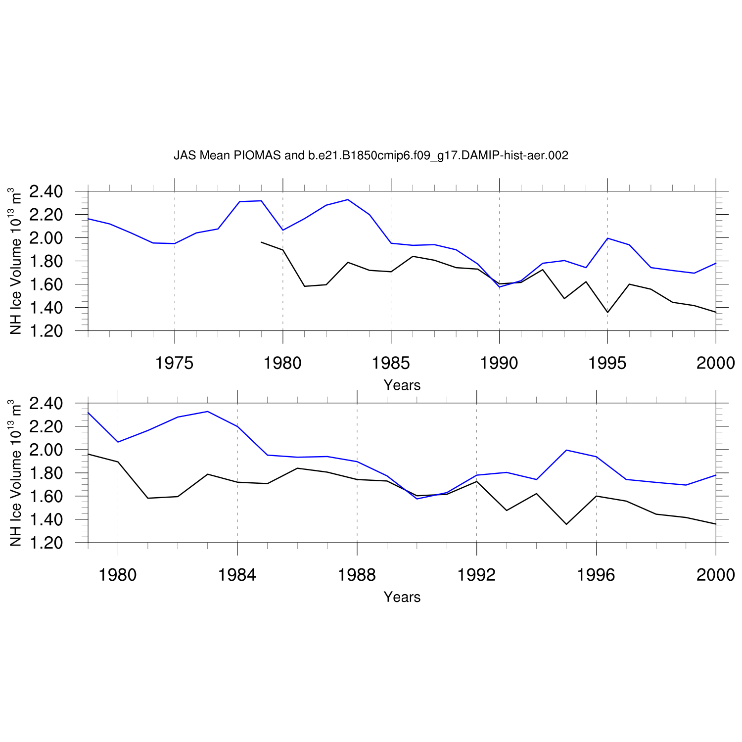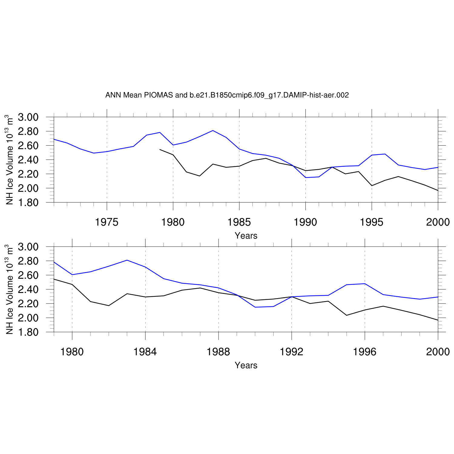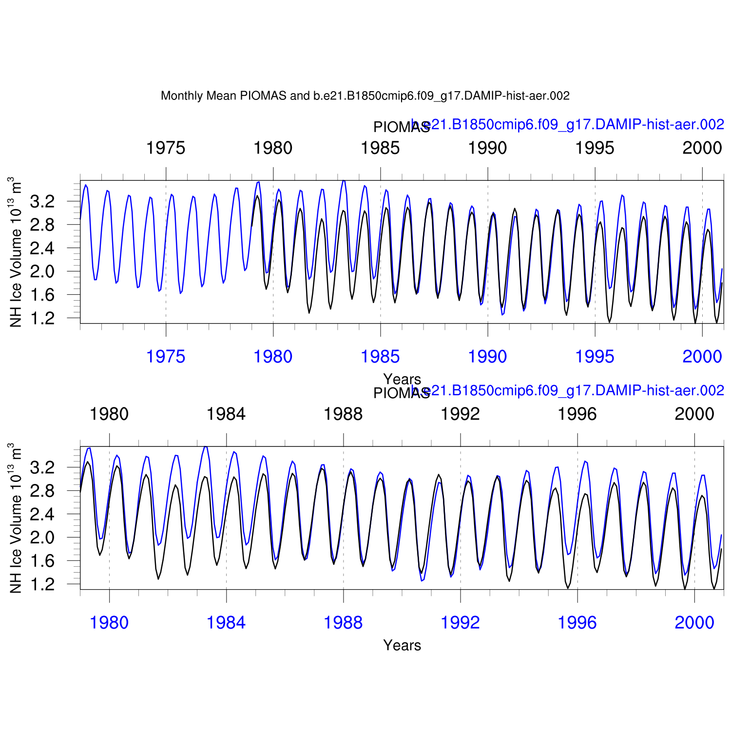 Annual and Seasonal Ice Volume vs. PIOMAS (20thC)