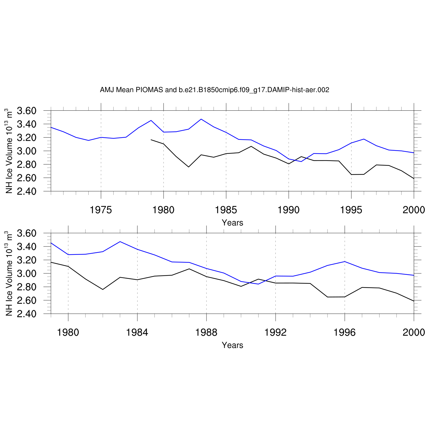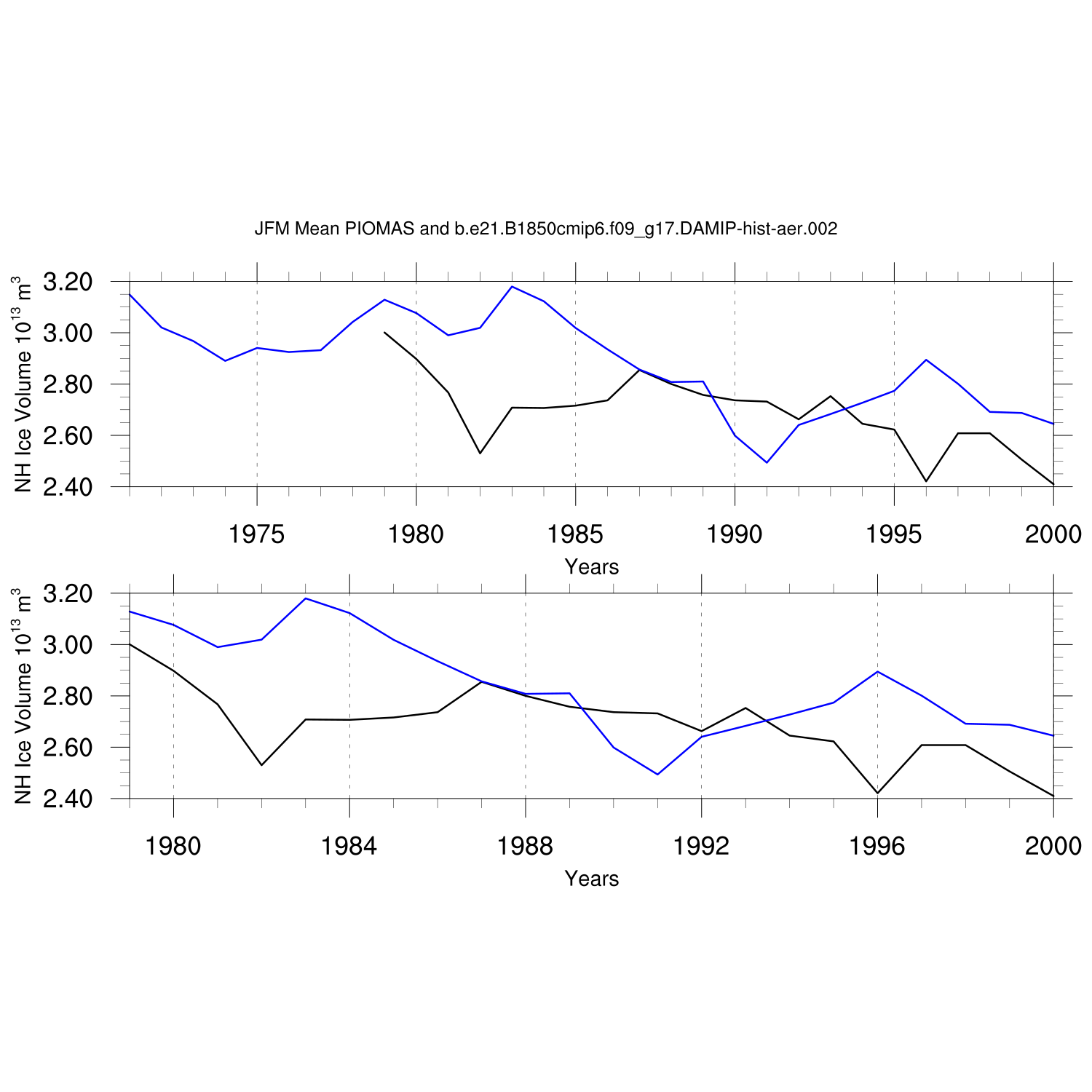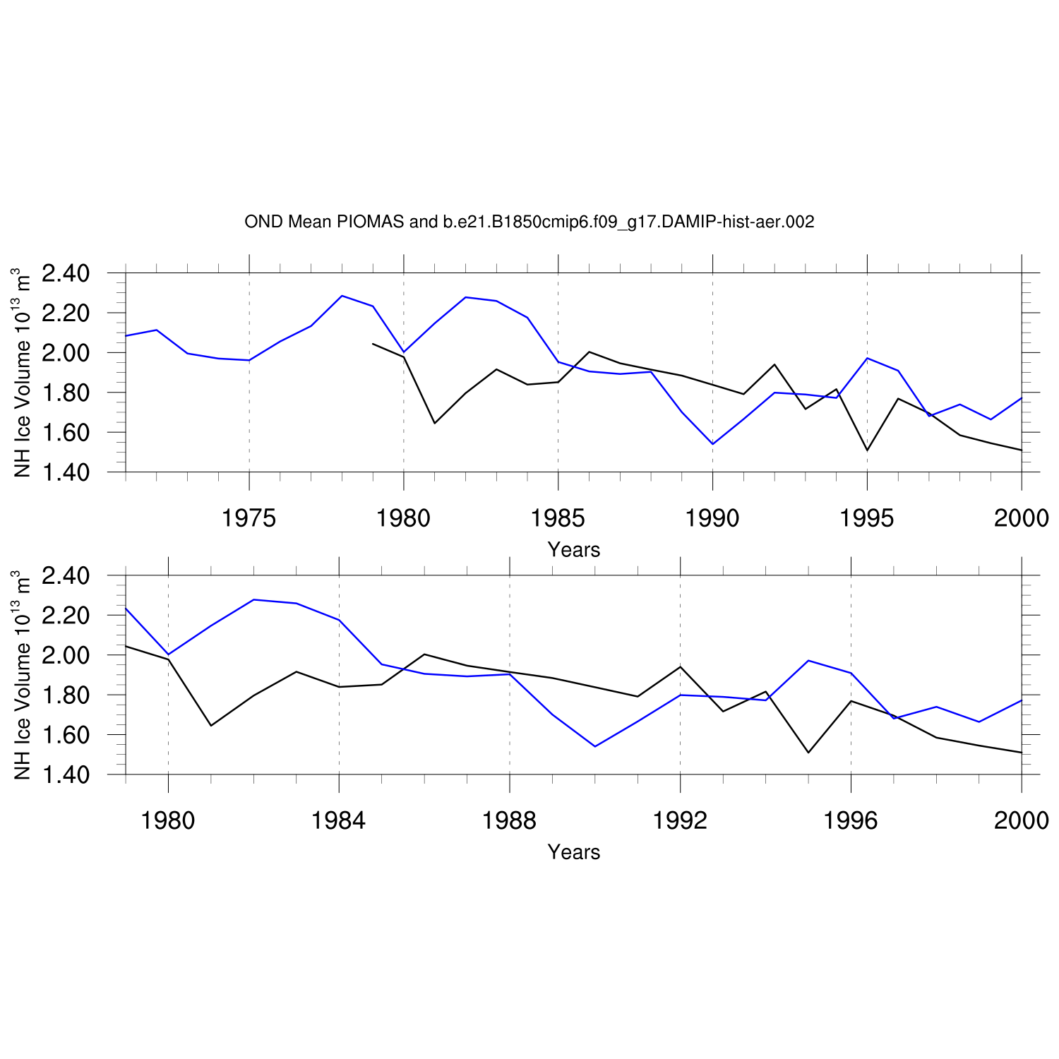 Annual and Seasonal Ice Volume vs. PIOMAS (20thC)