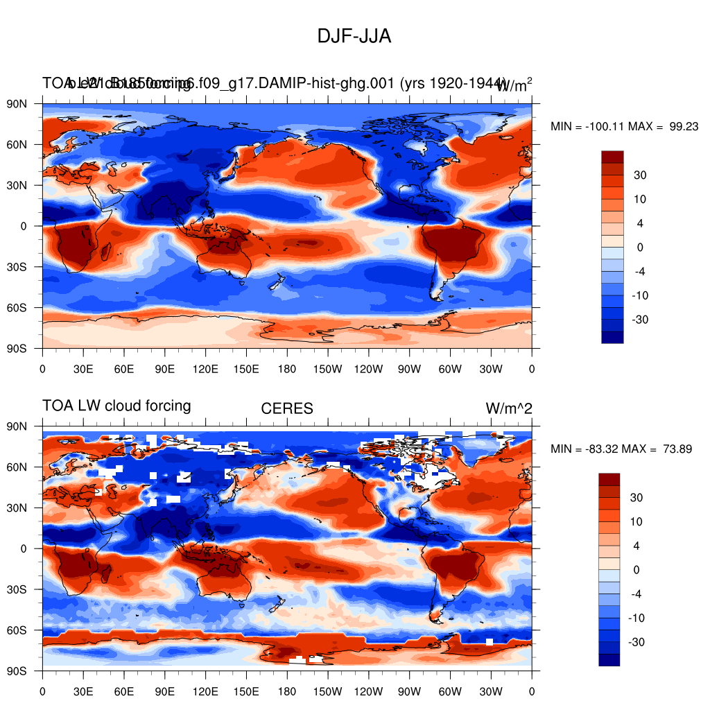 LWCF * TOA longwave cloud forcing plot