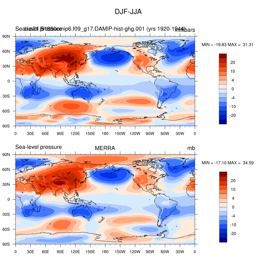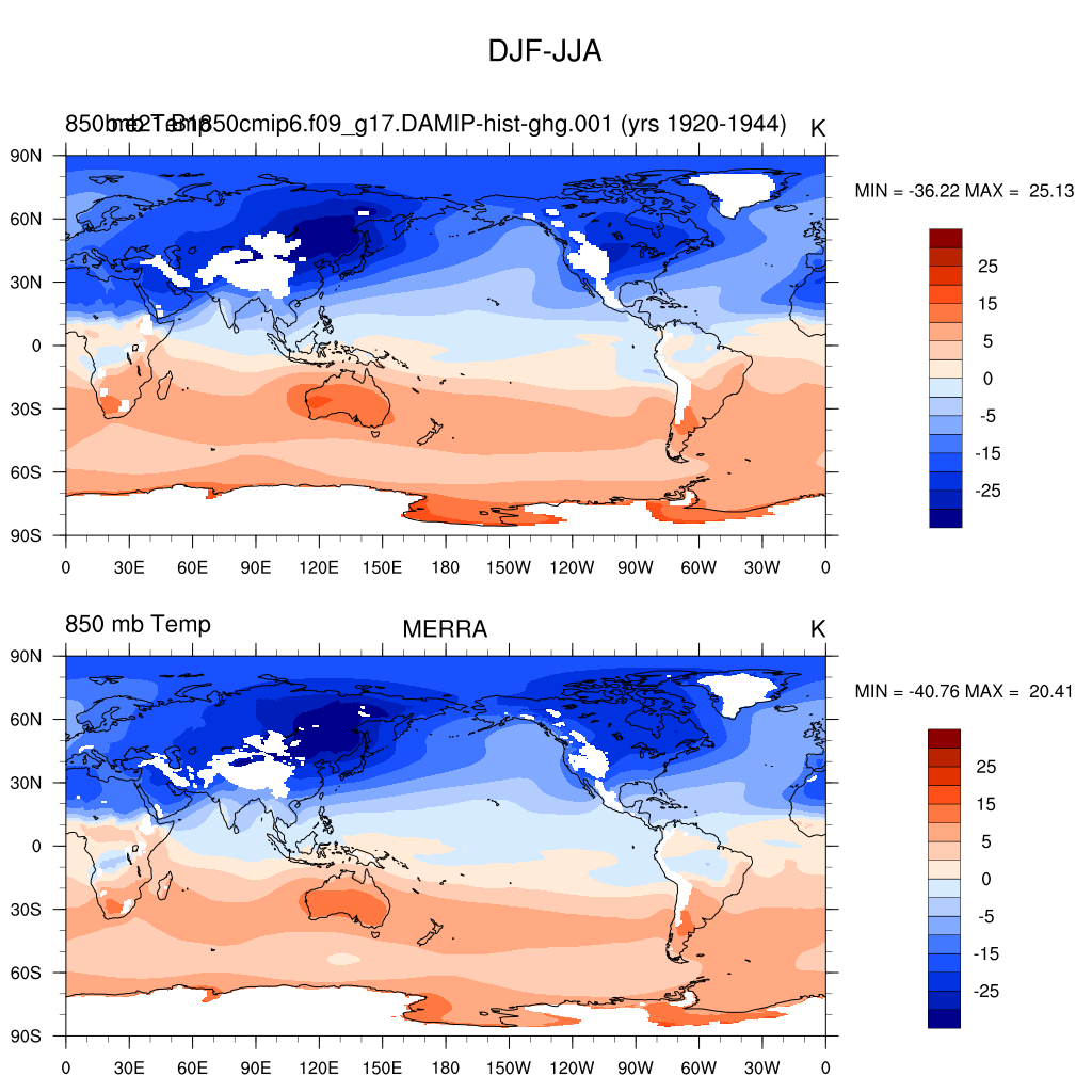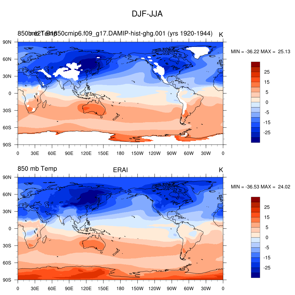 DIAG Set 9 - Horizontal contour plots of DJF-JJA differences