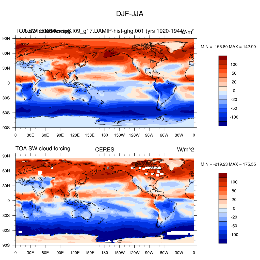 SWCF * TOA shortwave cloud forcing plot
