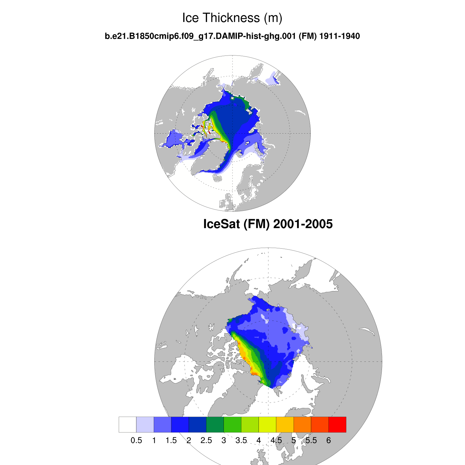 Ice Thickness vs IceSat (NH) Contour FM ON ICESat (NH) info