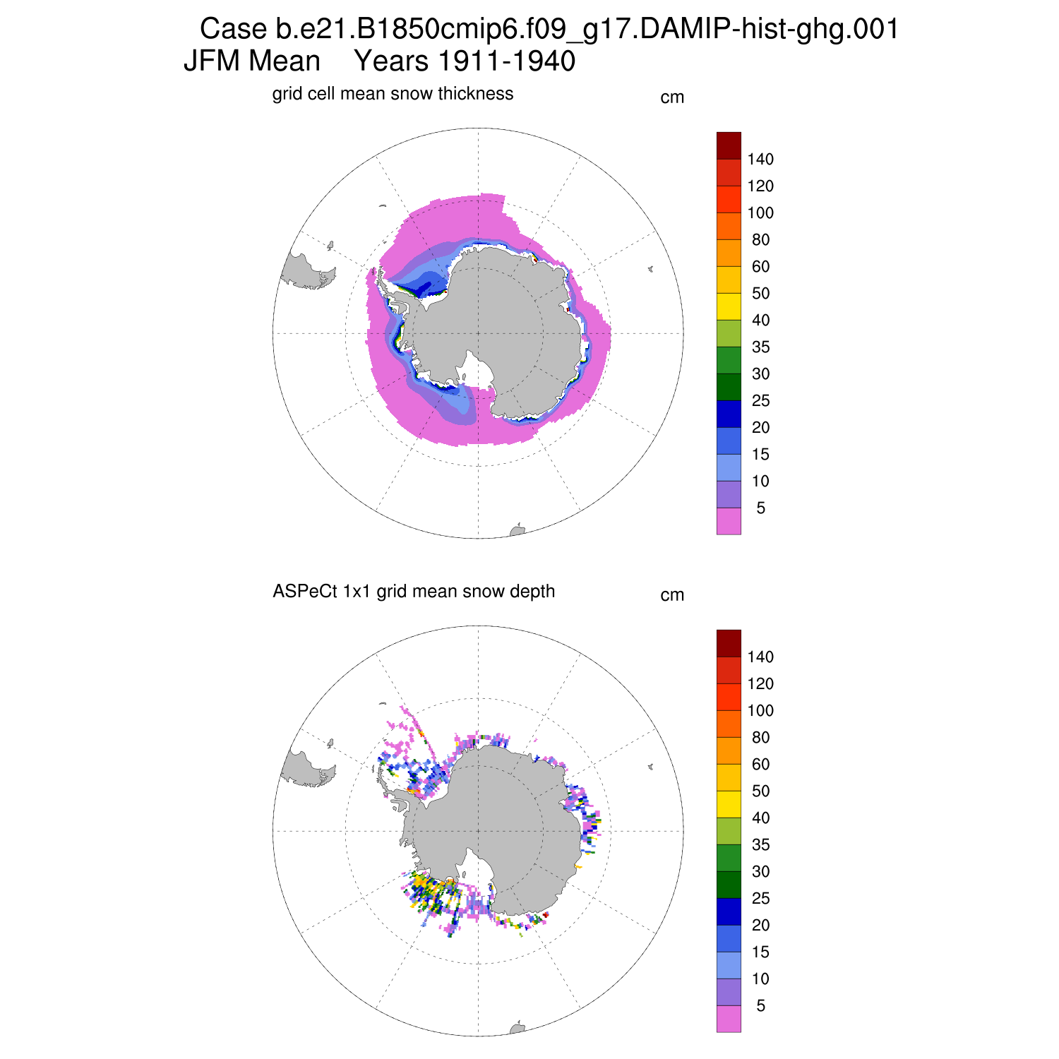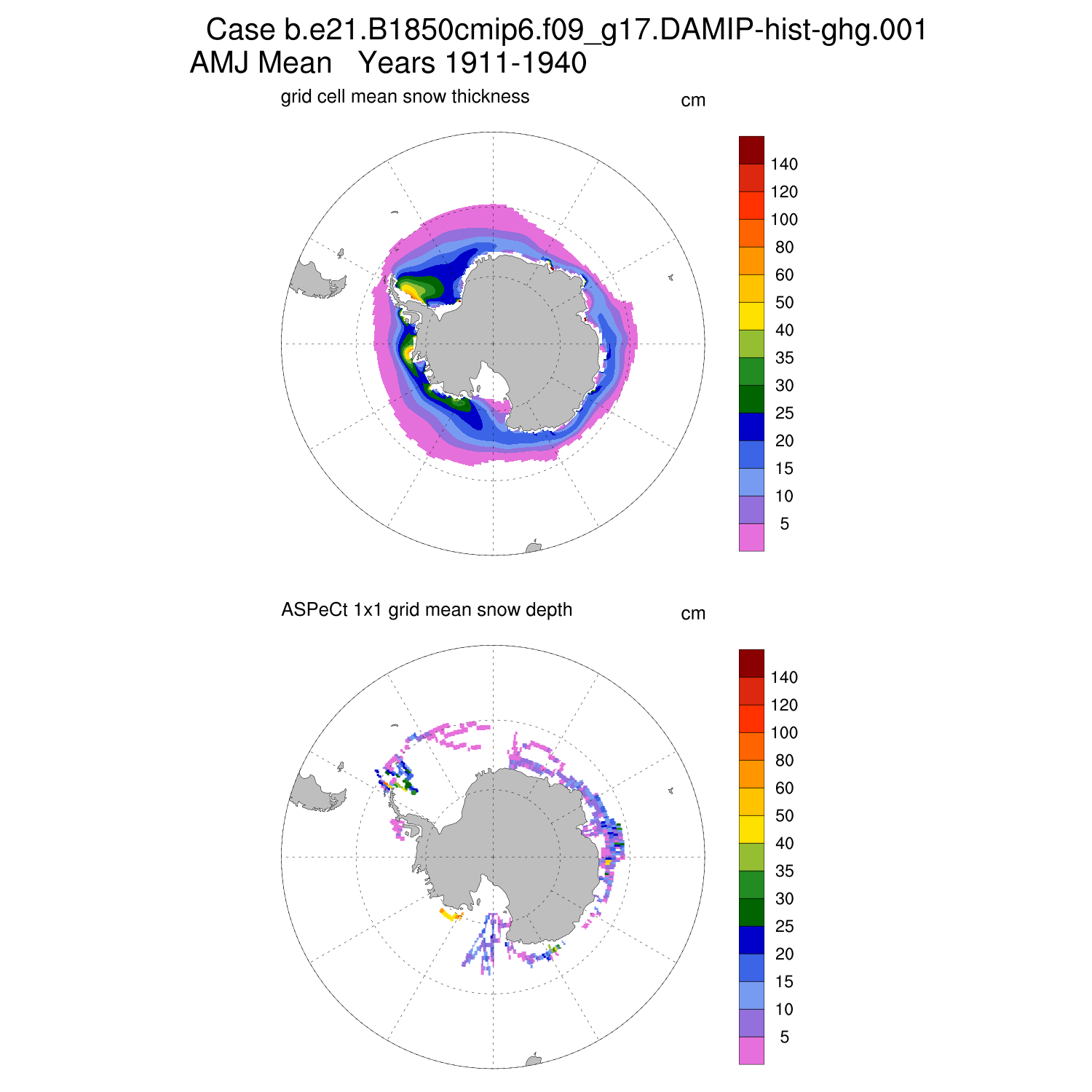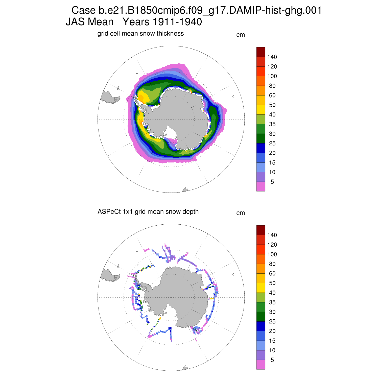 Snow Depth vs ASPeCt (SH) Contour JFM AMJ JAS OND ASPeCt (SH) info