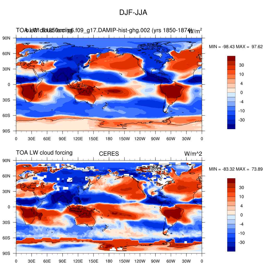 LWCF * TOA longwave cloud forcing plot