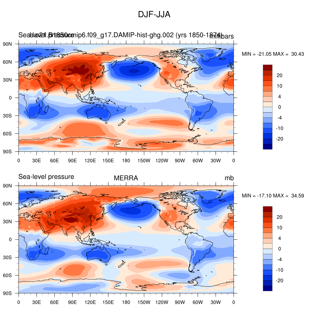 DIAG Set 9 - Horizontal contour plots of DJF-JJA differences