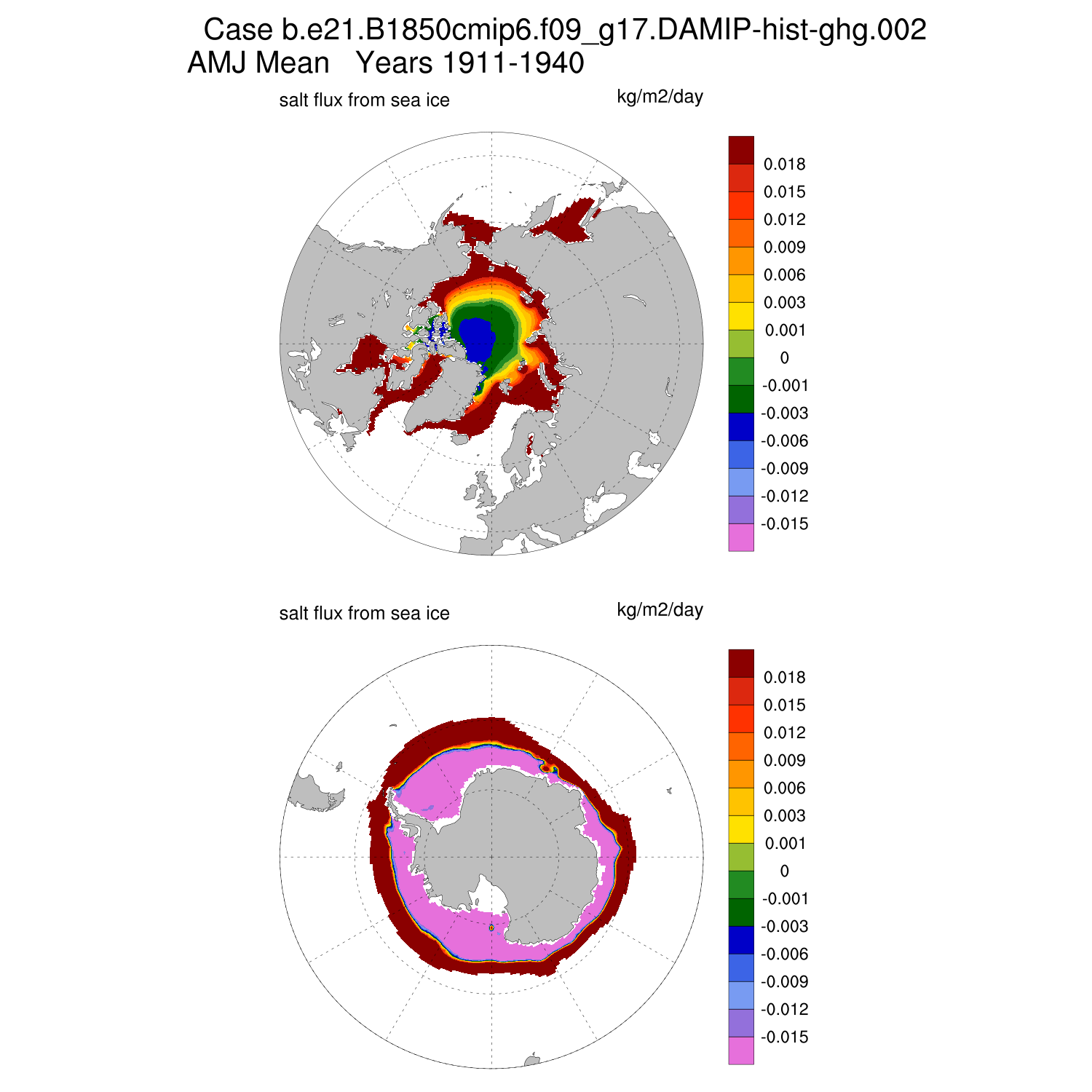 Salt Flux (>0, ocean gains salt) JFM AMJ JAS OND ANN