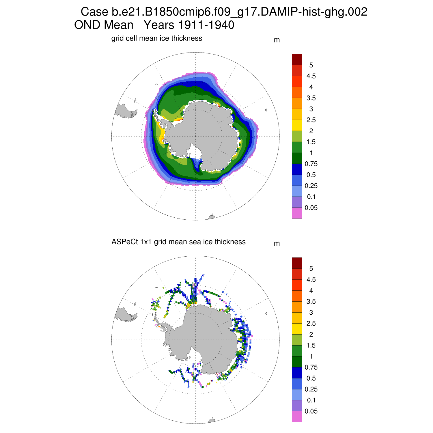 Ice Thickness vs ASPeCt (SH) Contour JFM AMJ JAS OND ASPeCt (SH) info