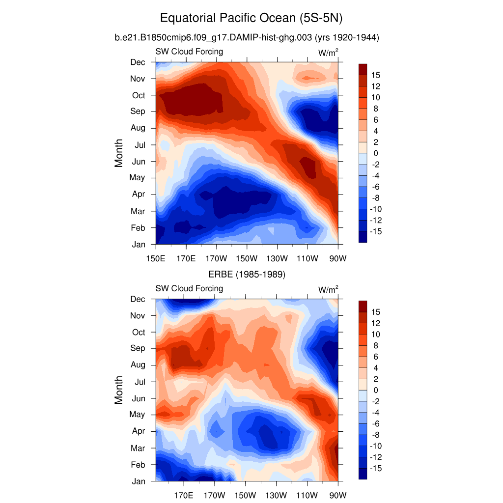 SW/LW Cloud Forcing ERBE 1985-1989 plot