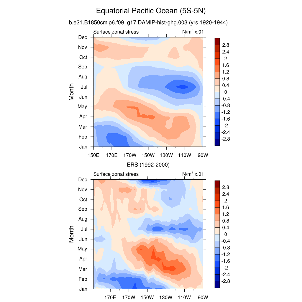 Surface Zonal Stress ERS 1992-2000 plot