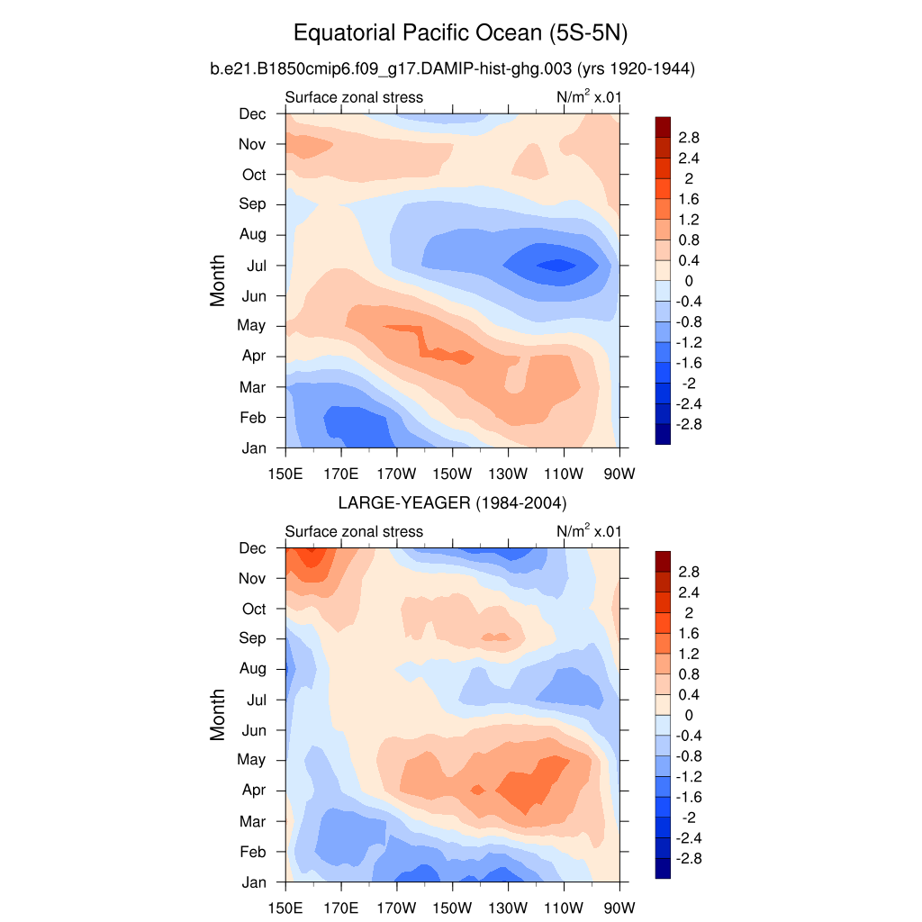 Surface Zonal Stress LARGE-YEAGER 1984-2004 plot