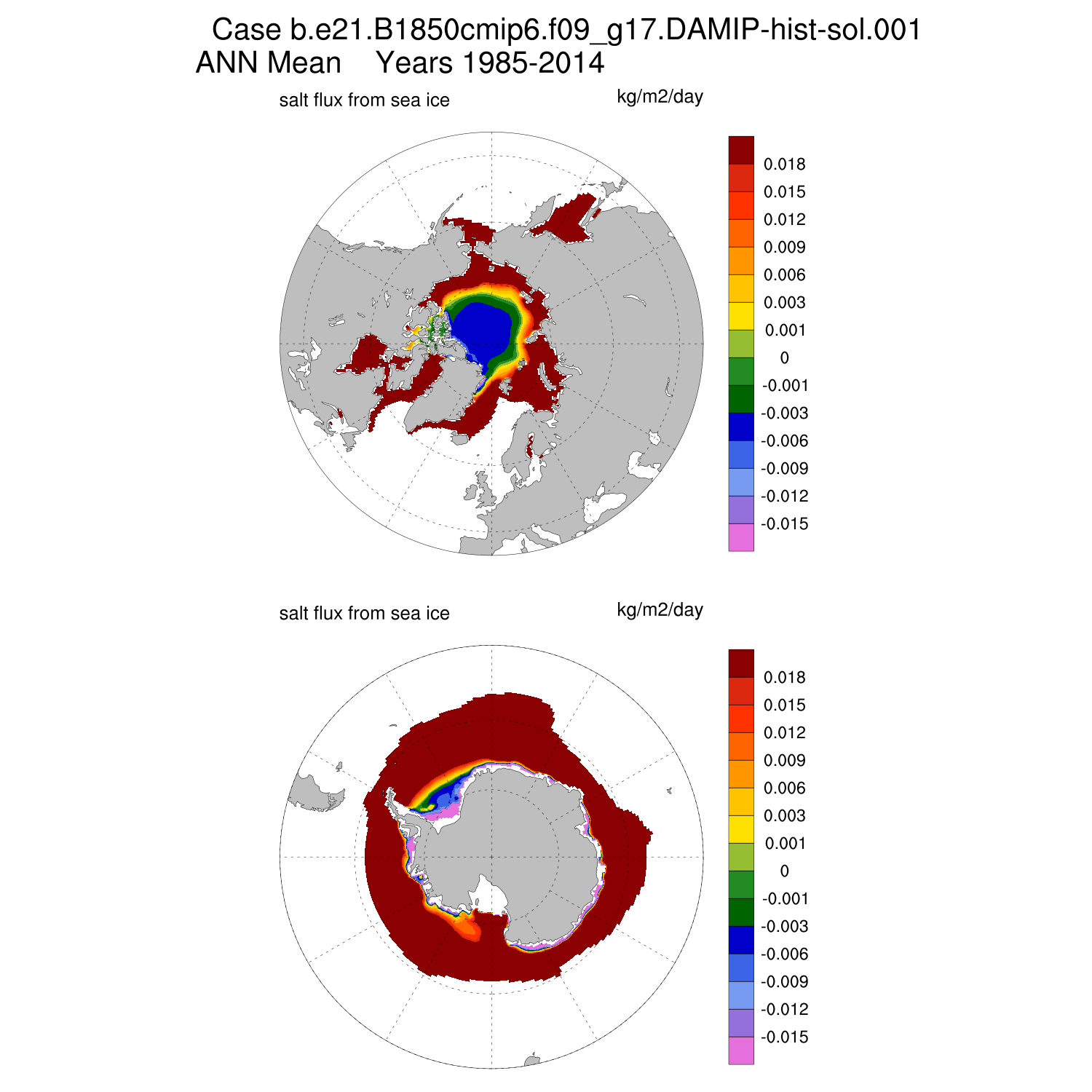 Salt Flux (>0, ocean gains salt)