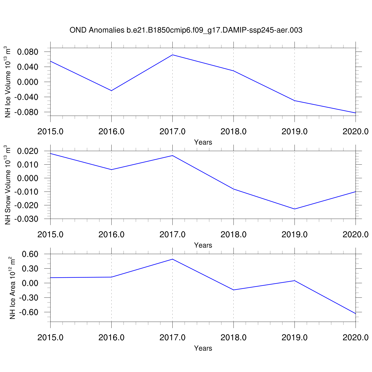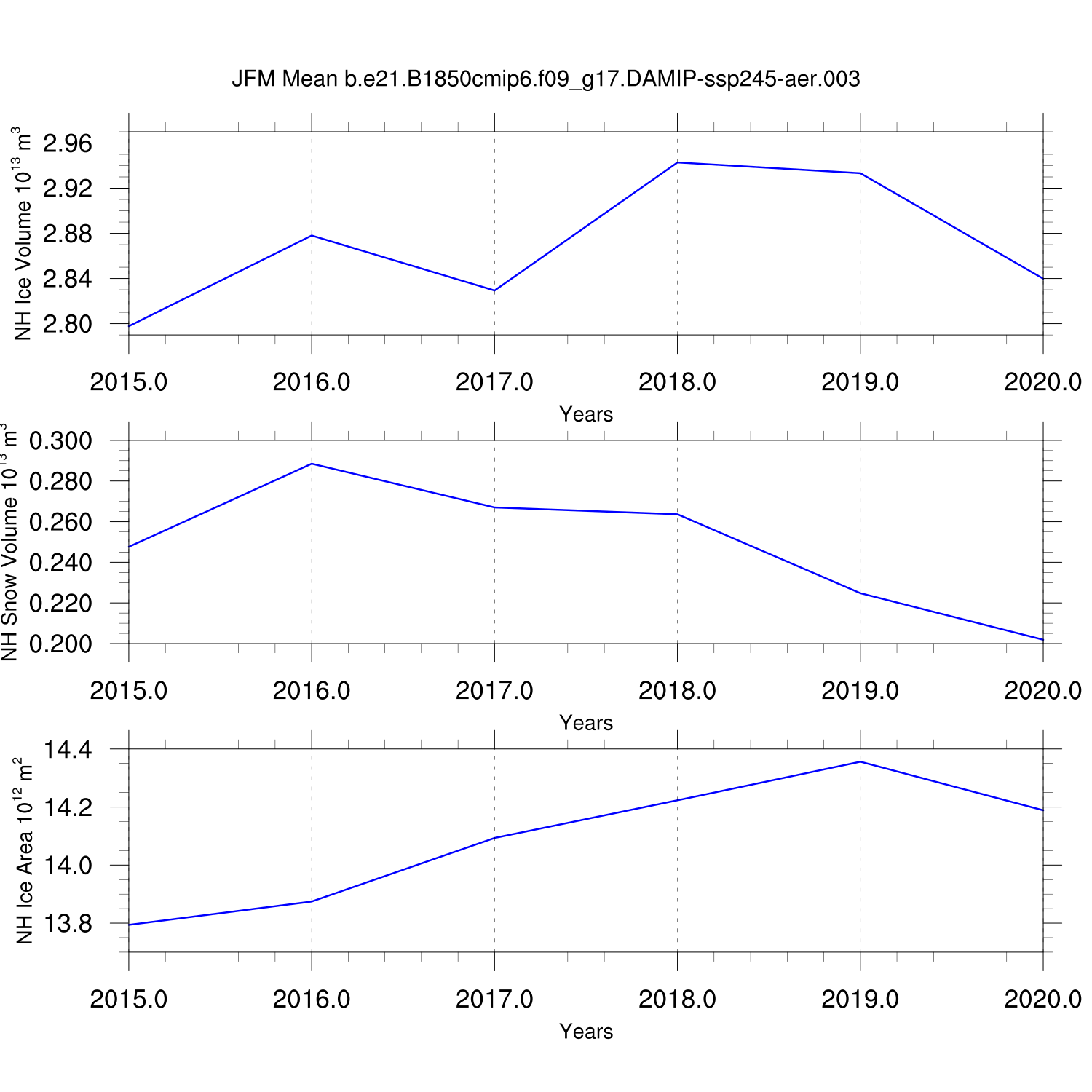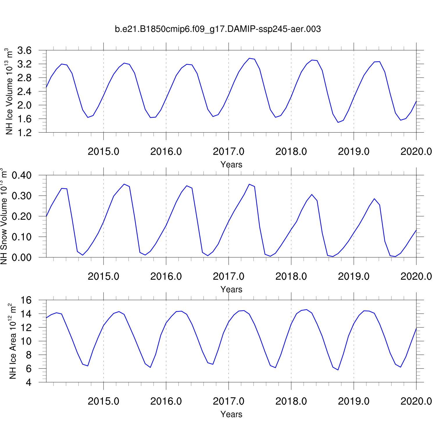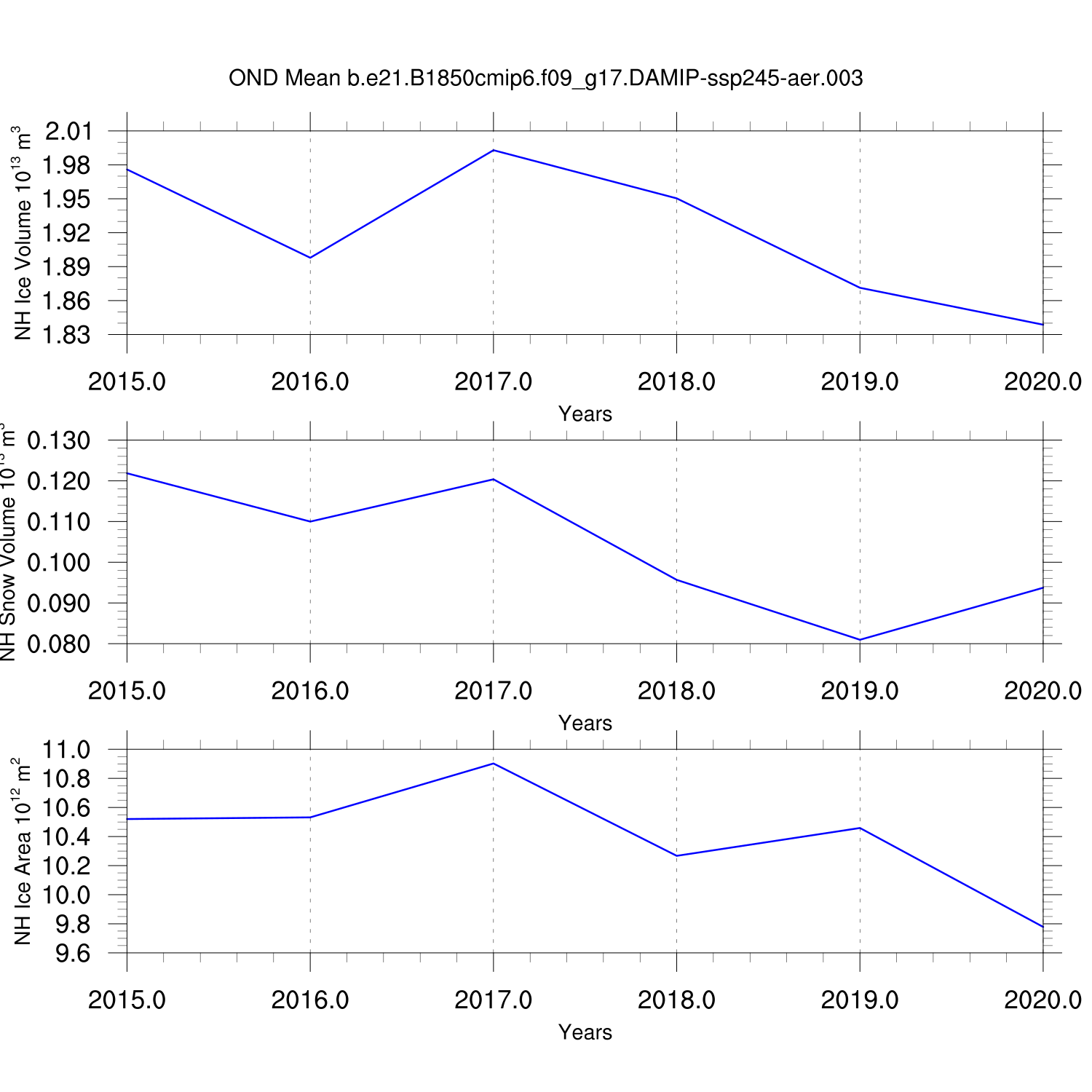 Time Series of Ice Volume, Snow Volume and Ice Area