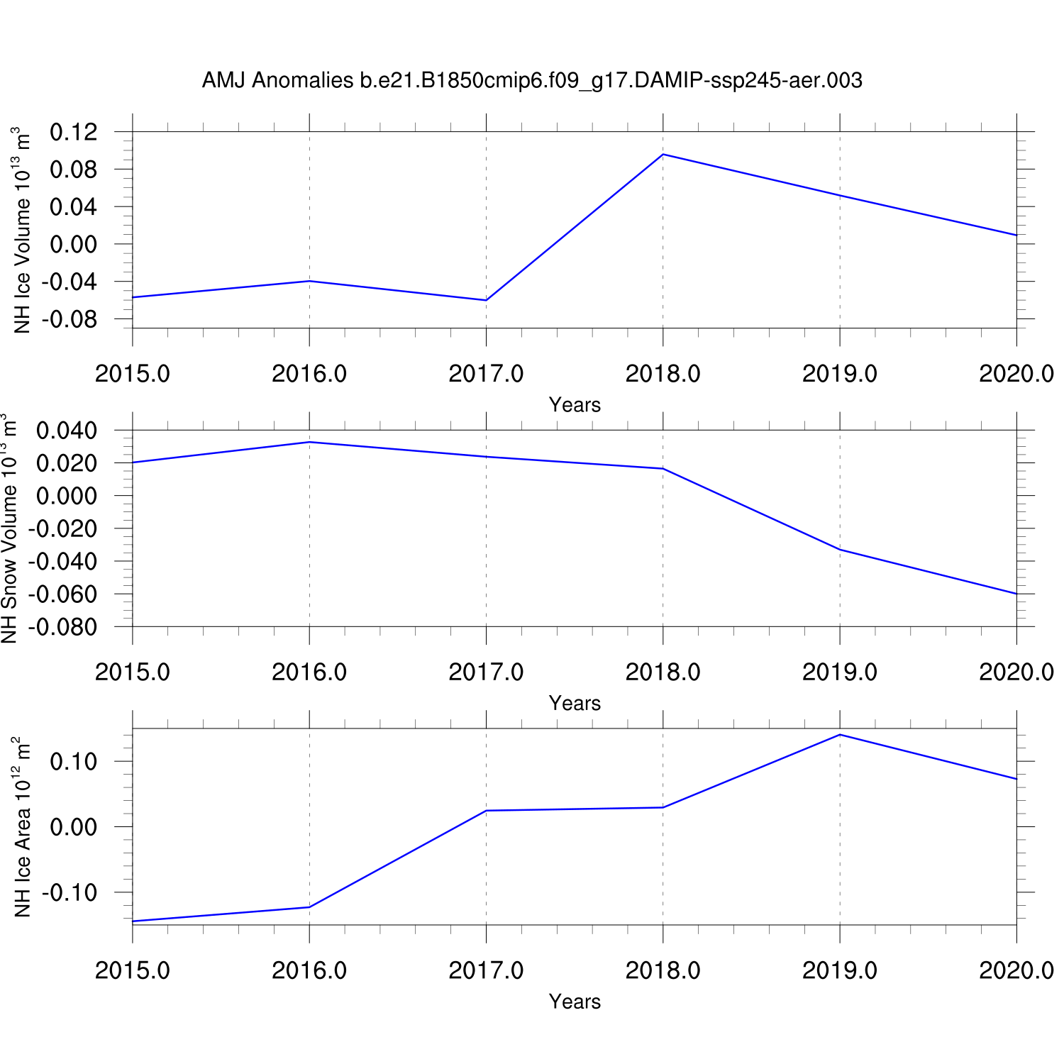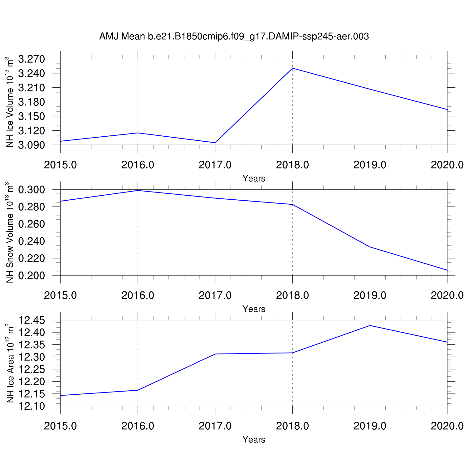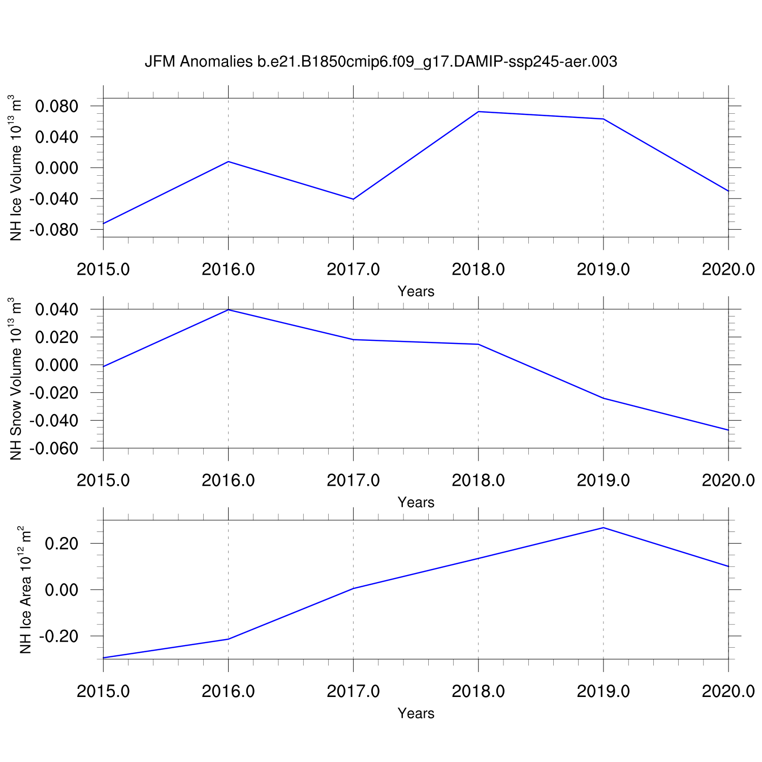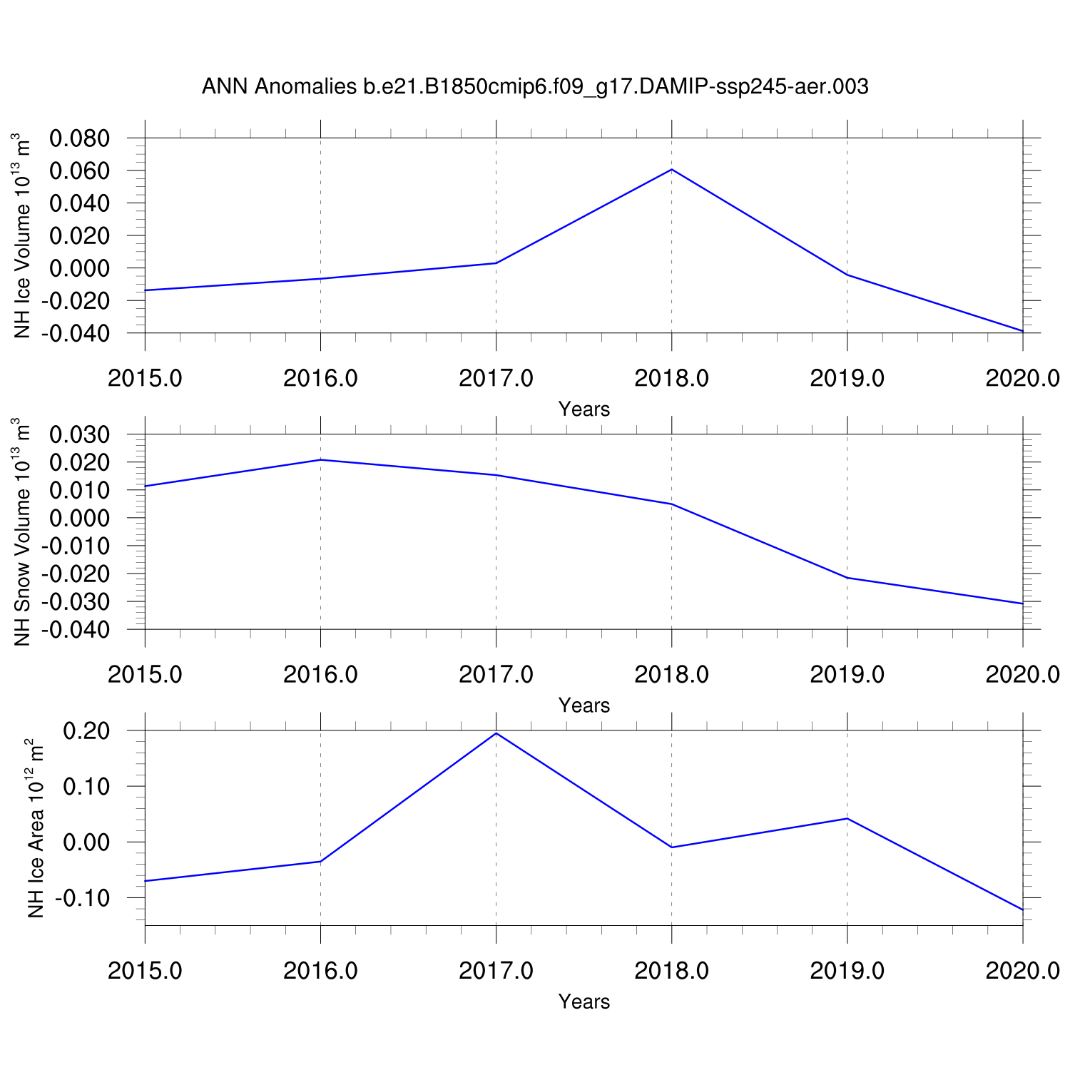 Time Series of Ice Volume, Snow Volume and Ice Area