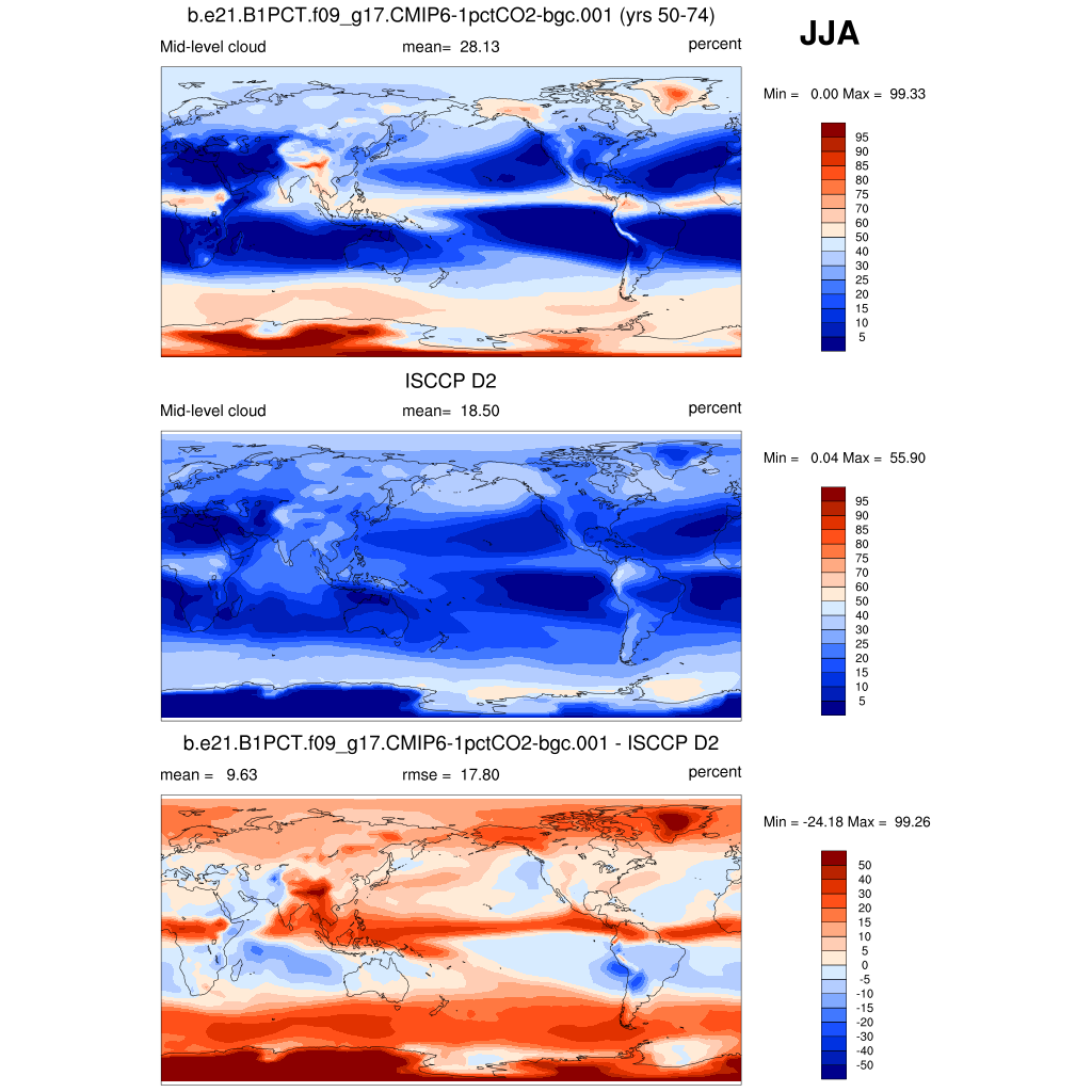 | CLDMED_ISCCPCOSP | Mid-topped cloud amount (tau > 0.3) | plot | plot | plot |