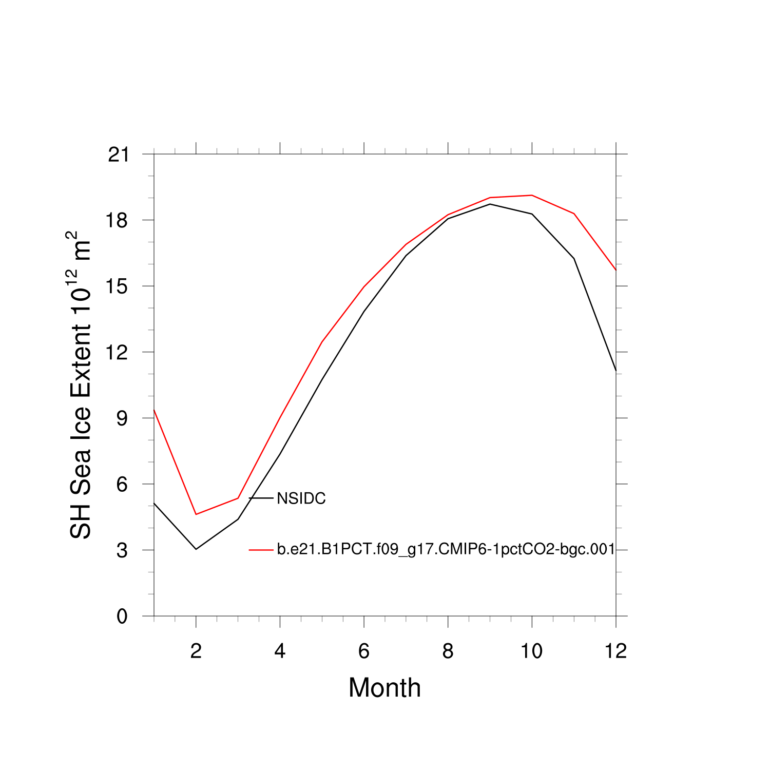 Climatological Monthly Mean Extent vs Obs plot plot