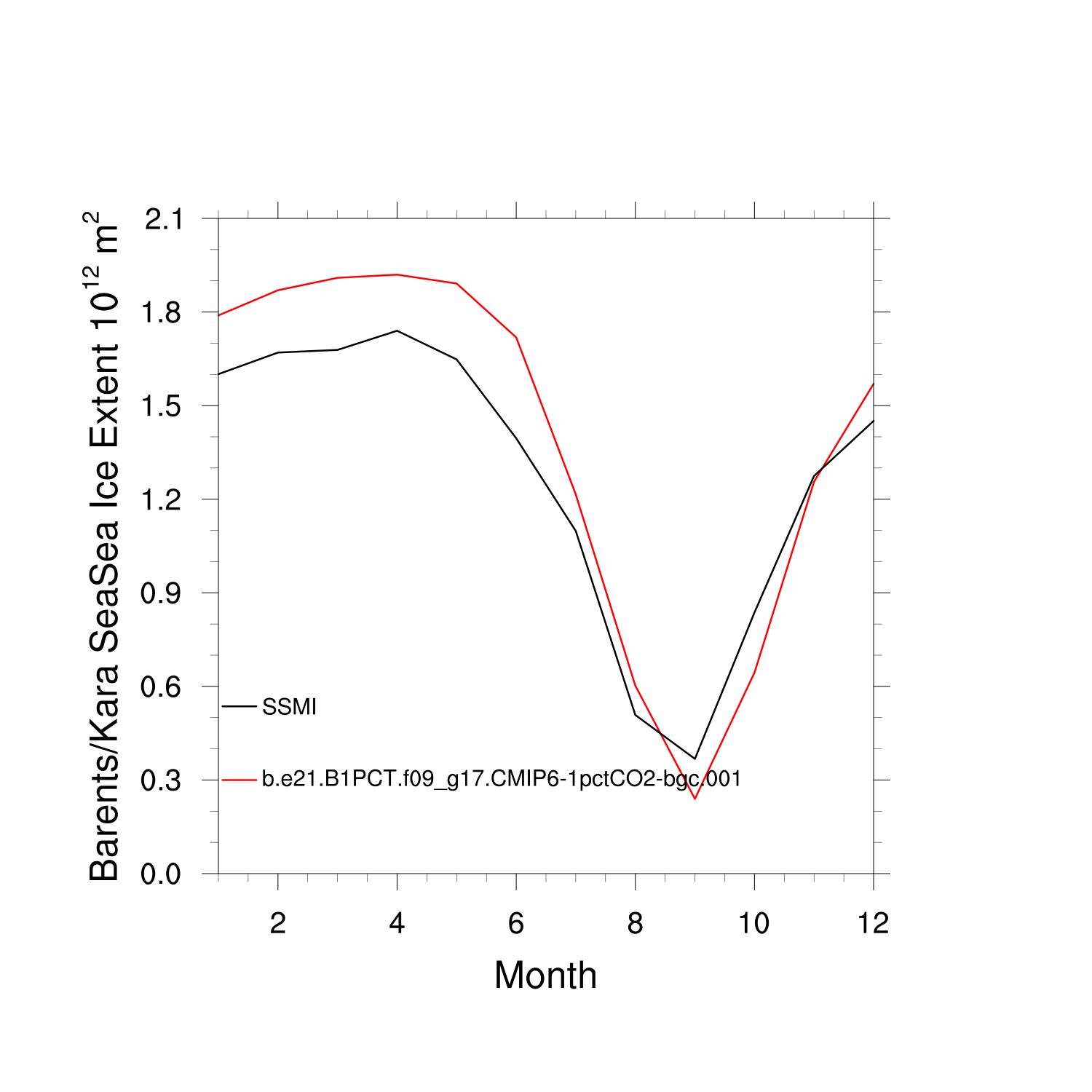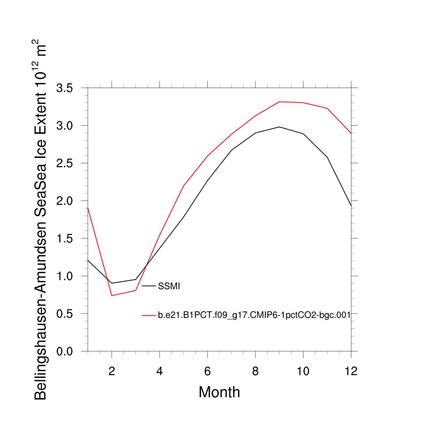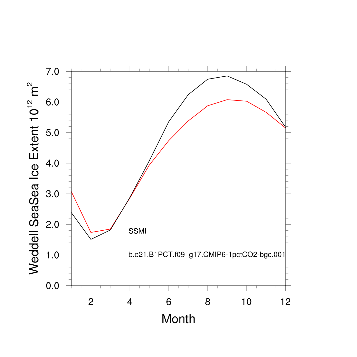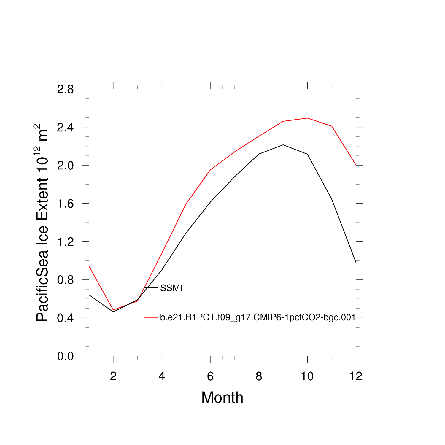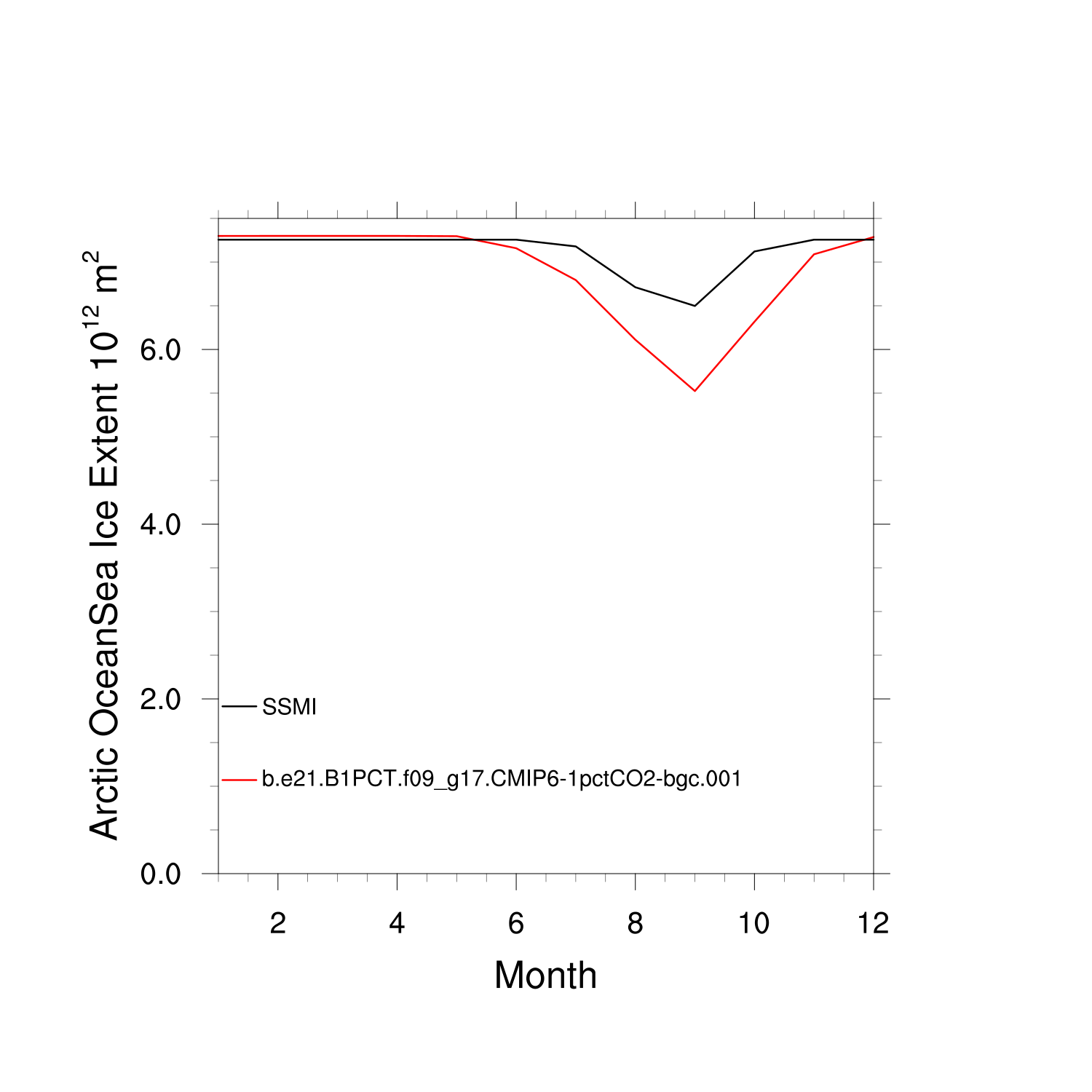Climatological Monthly Mean Extent vs Obs plot
