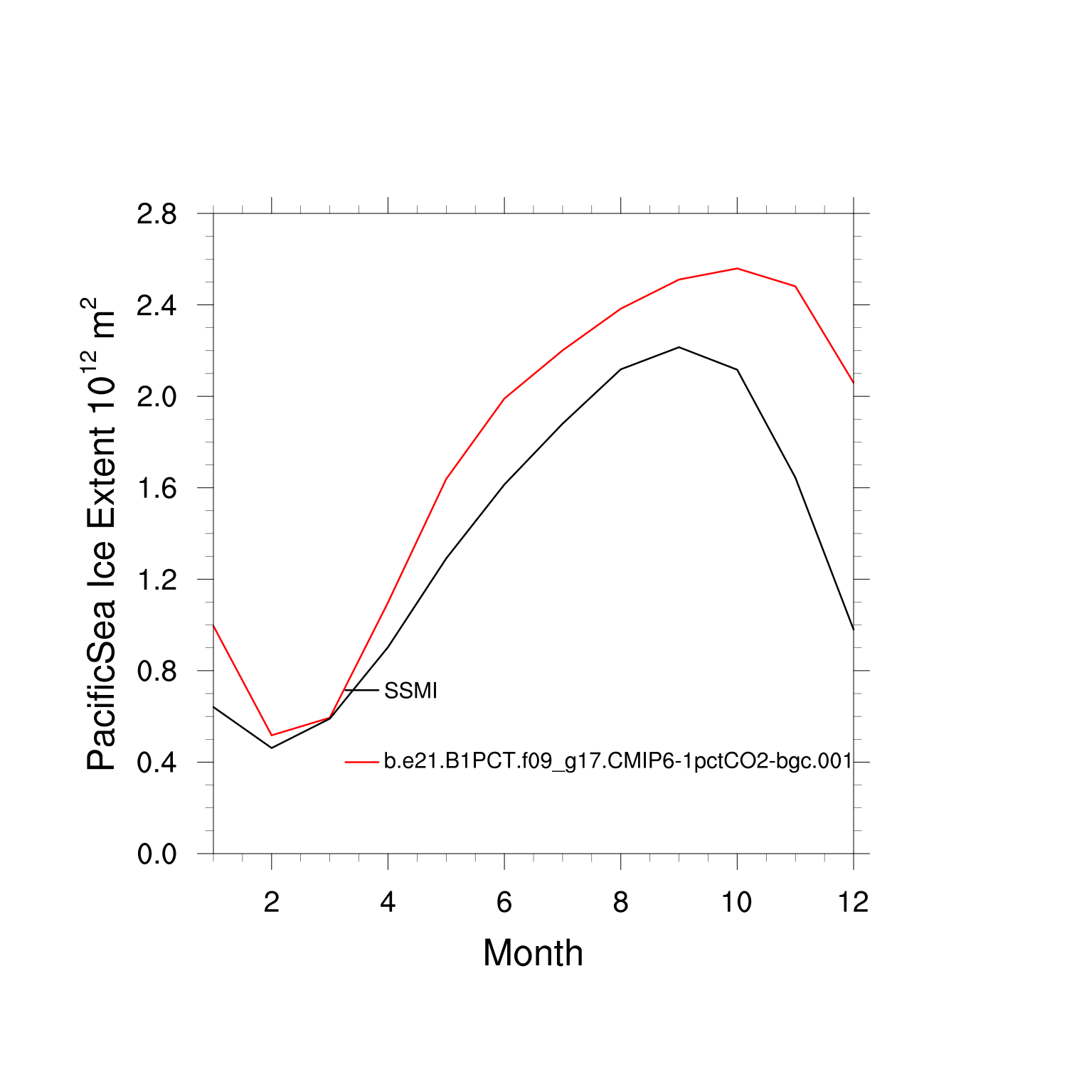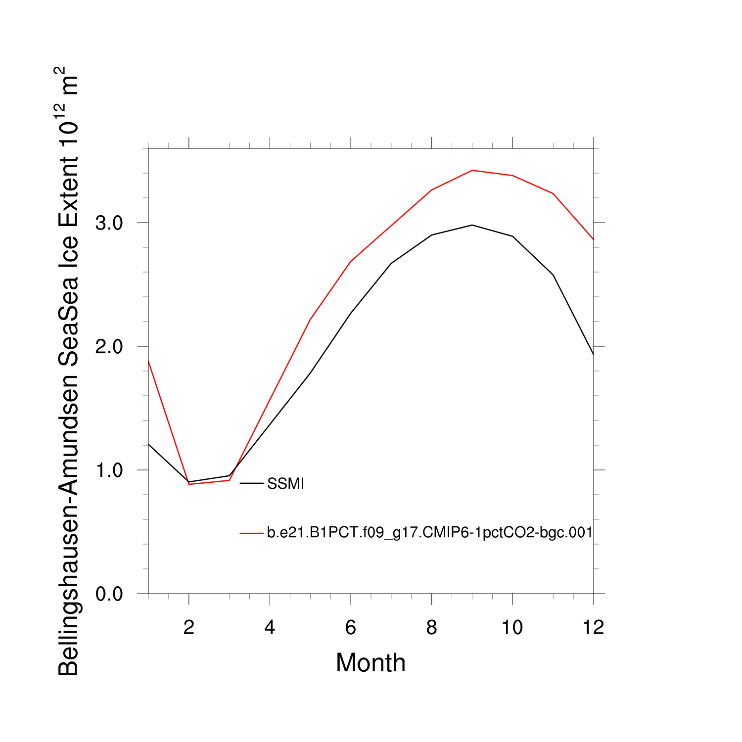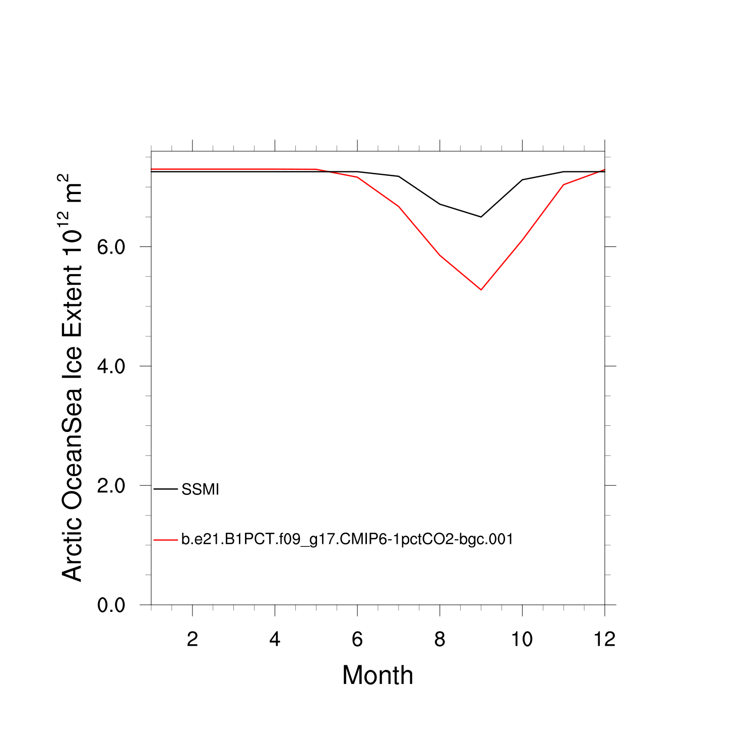 Climatological Monthly Mean Extent vs Obs plot