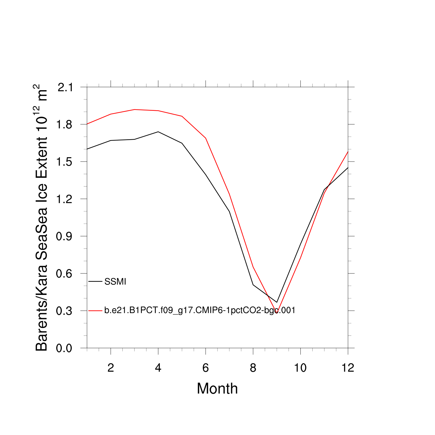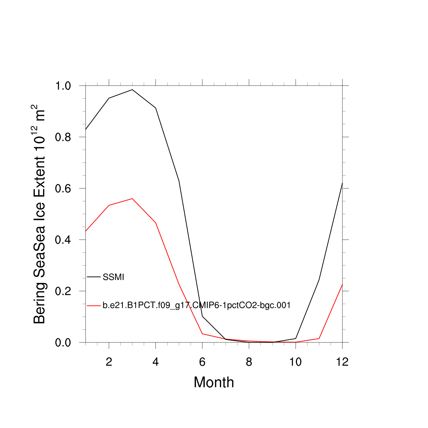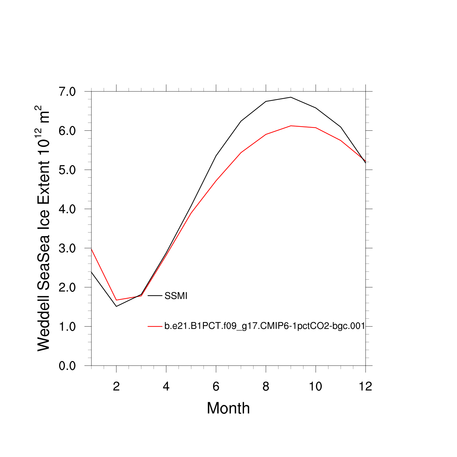 Climatological Monthly Mean Extent vs Obs plot