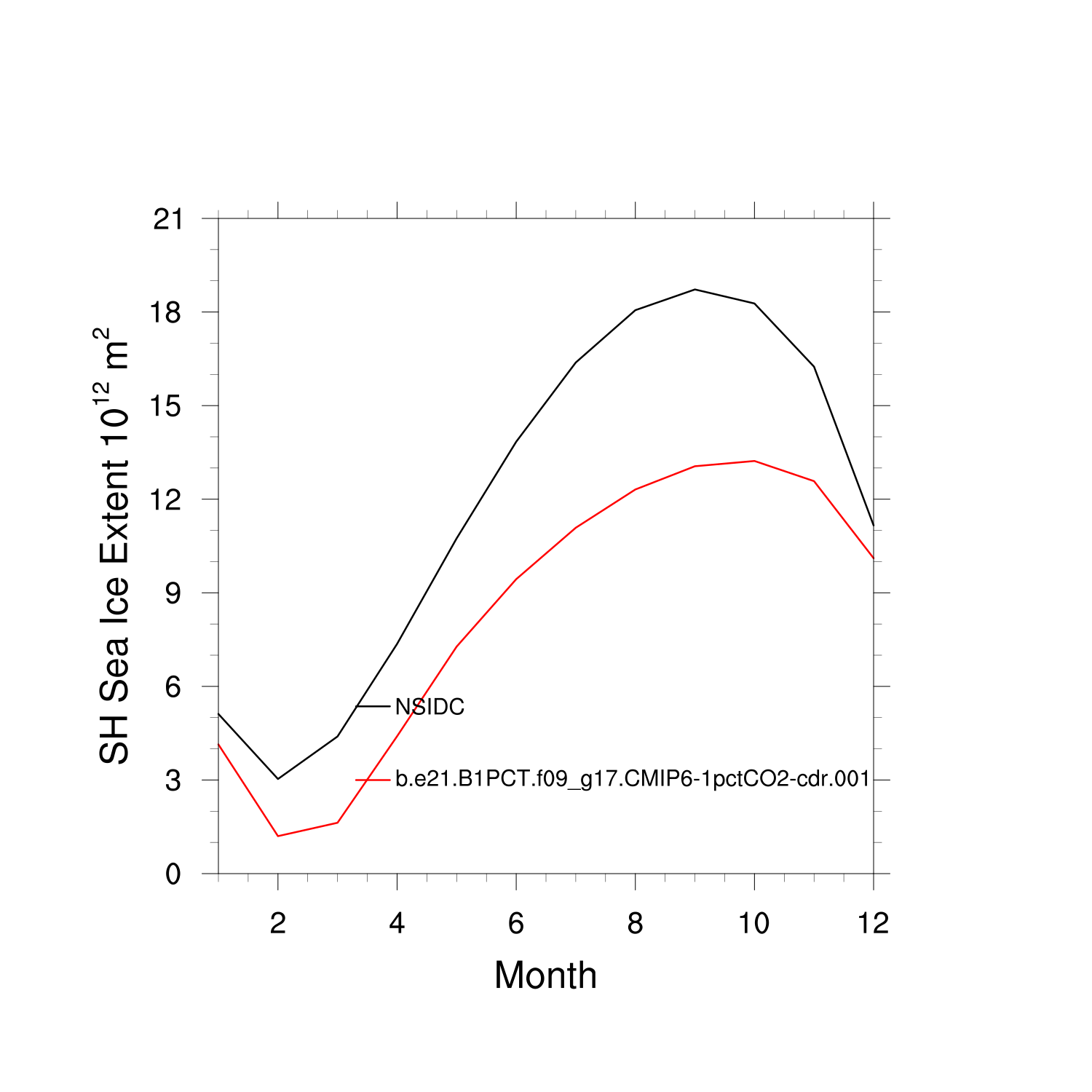 Climatological Monthly Mean Extent vs Obs plot plot